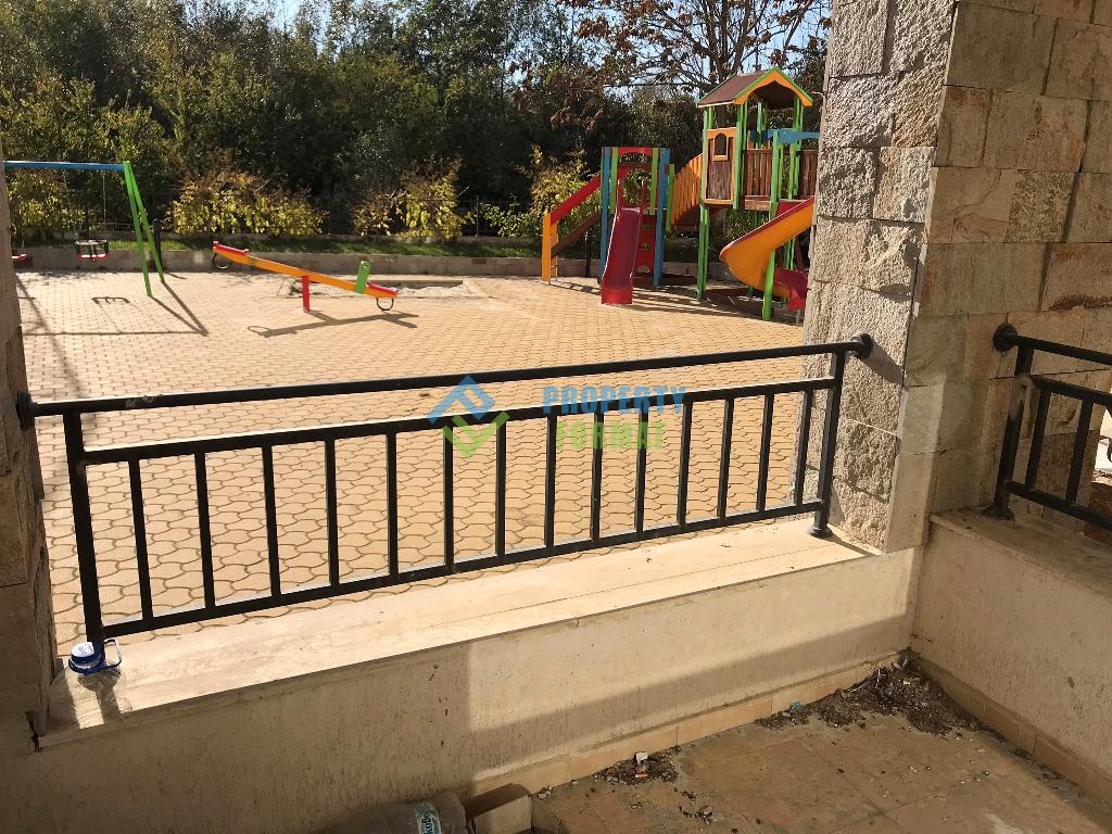 Closed area of the complex decorated landscaped with many flower beds and shrubs. Services and amenities include an outdoor pool with children's section, sunbathing area with sun loungers, a lobby and pool bar, restaurant, 24-hour security, car Parking.