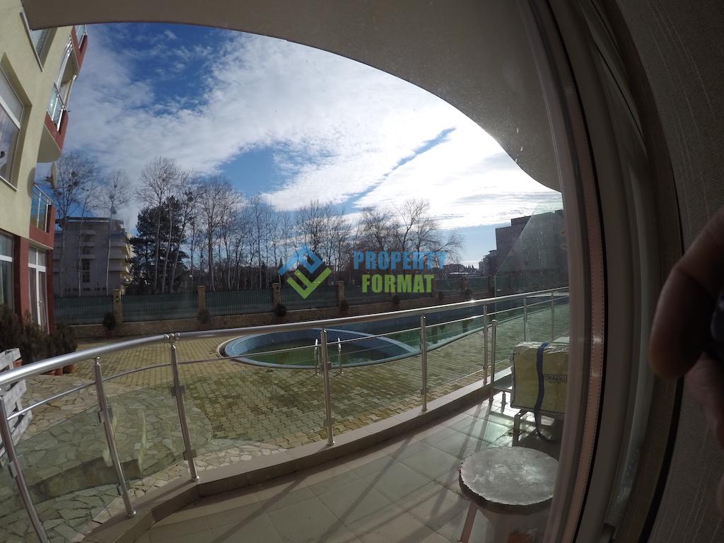 The apartment is located on the first ground floor with pool views in Sunny beach. Around the complex there are green areas. The location is quiet.