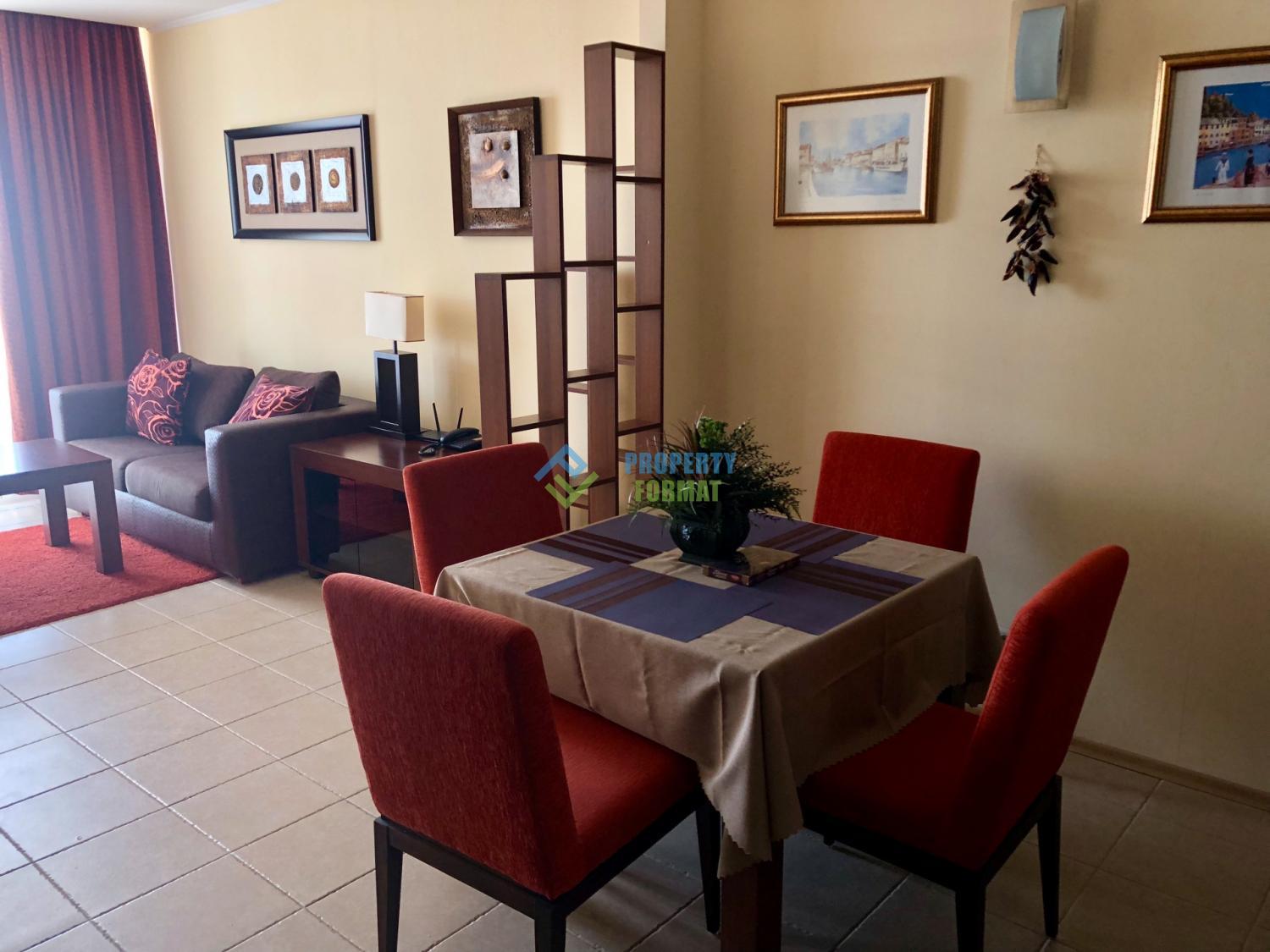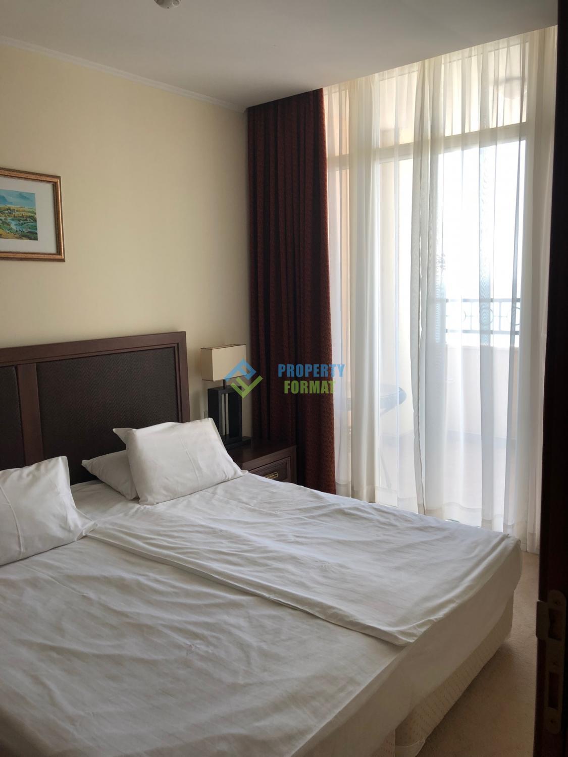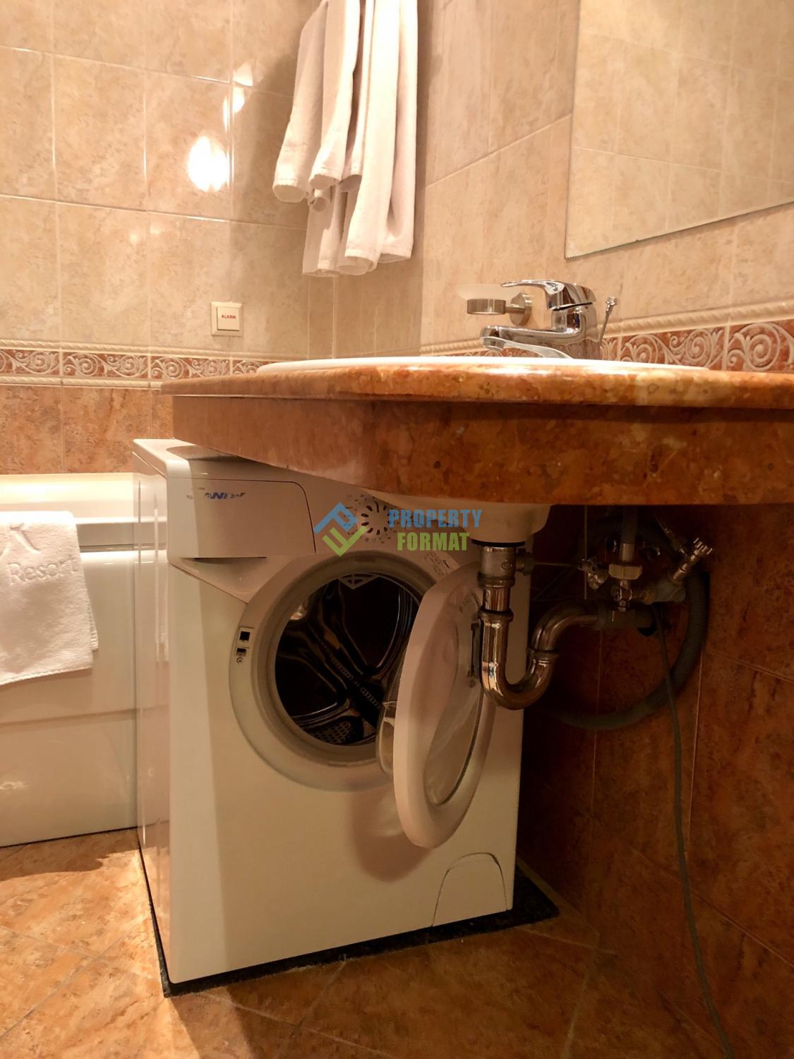 The proposed two-bedroom apartment has an elegant and modern interior, equipped with furniture and appliances. The bathroom has a white bath, sink, toilet, water heater and washing machine. From the Windows and balcony of the apartment offer beautiful views of the sea and the complex.