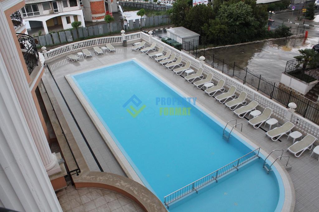 The modern complex offers a quality service and a high level of comfort for its inhabitants. Guests and residents a wonderful green area with rare species of trees, an outdoor swimming pool for adults and children, indoor heated pool, restaurant, shops, VIP panoramic rooftop pool with bar, Spa center, beauty salon, fitness center, Parking, hour security.