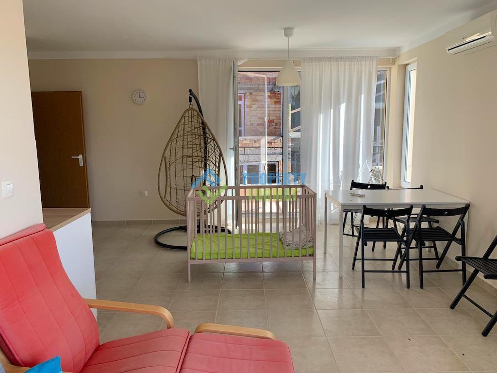 Apartment for sale in Pomorie Residence complex in Pomorie. The apartment is located on the 4th penultimate floor. The apartment has two bathrooms and a large kitchen equipped with everything you need. The apartments are sold with furniture and air conditioning.