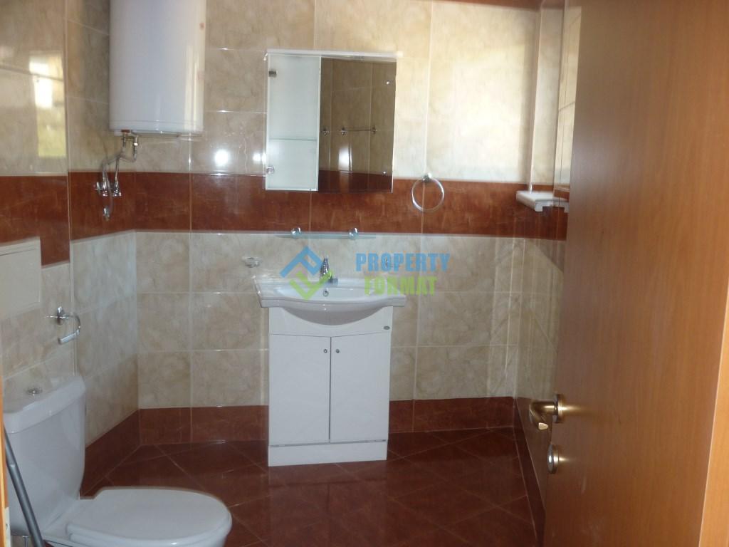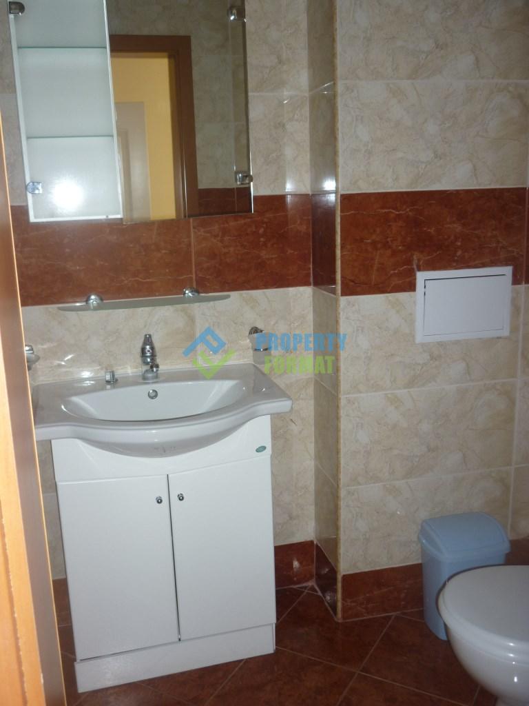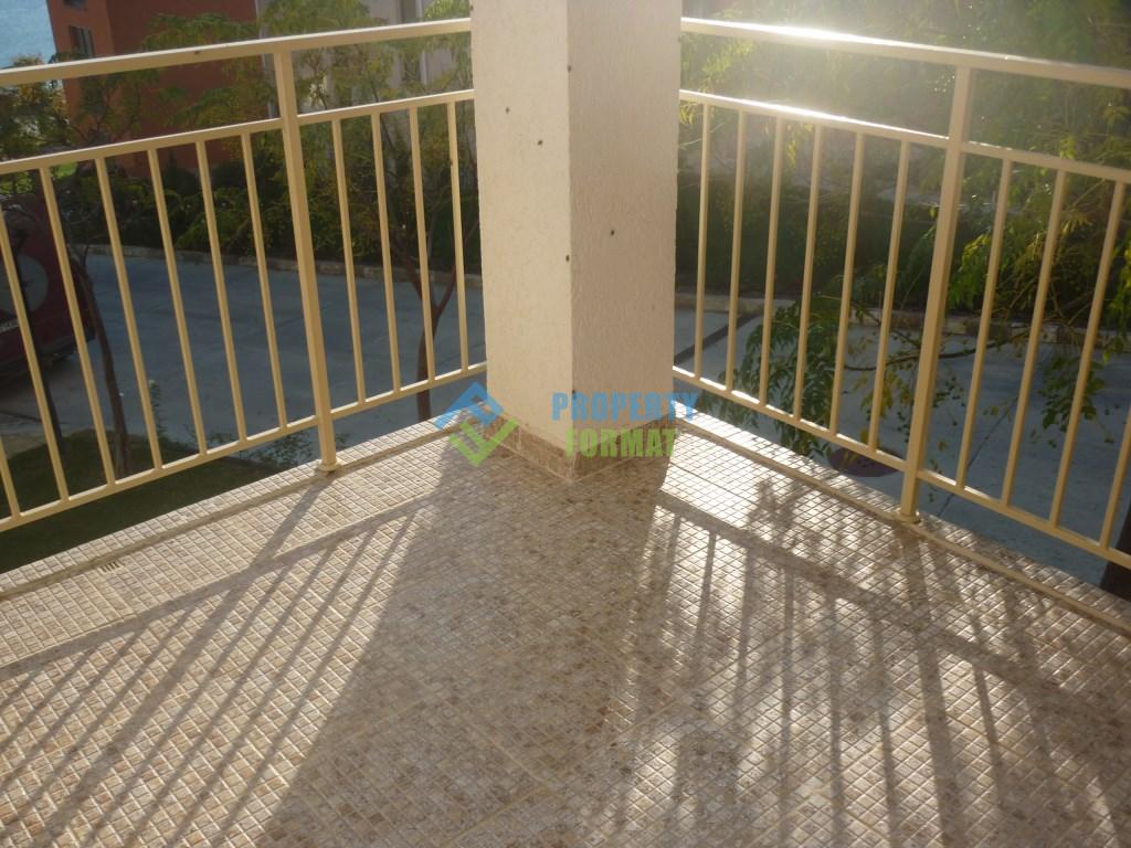 Two-bedroom apartment comprises the following layout: entrance hall, living room with kitchen area, two bedrooms, two bathrooms, balcony. The apartment is sold with furniture and appliances. Both bathrooms are equipped with a sink, a shower cabin, toilet and water heater. The spacious terrace is nice to enjoy the beauty of evening sunsets and sea view.