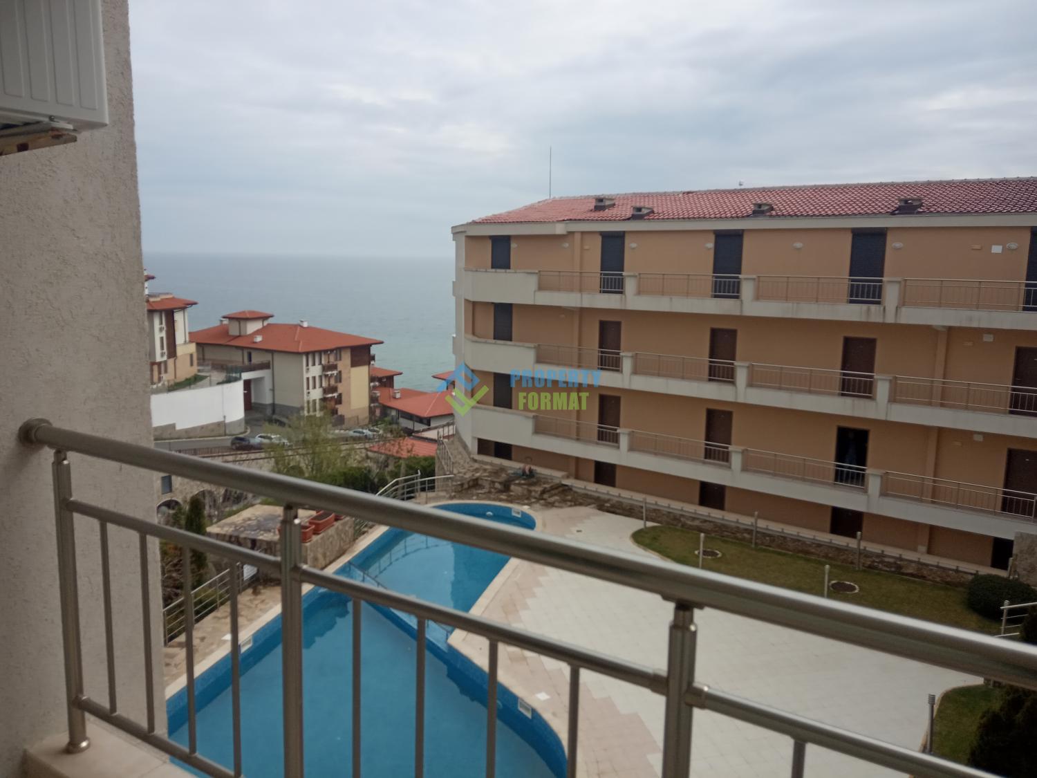 Furnished and equipped spacious apartment located on the 3rd floor. Consists of living room with kitchen area, 1 bedroom, bathroom. The main asset of this apartment is the balcony with a beautiful view of the sea and the pool.