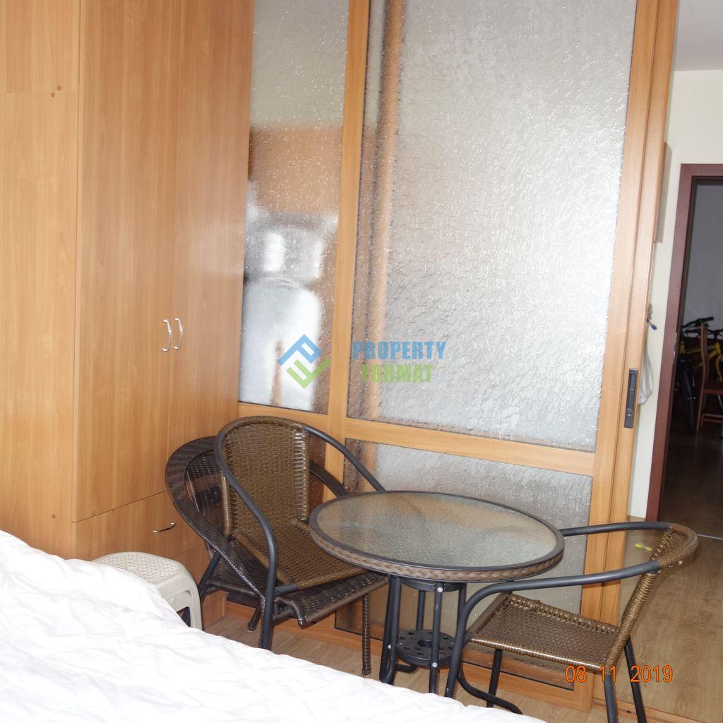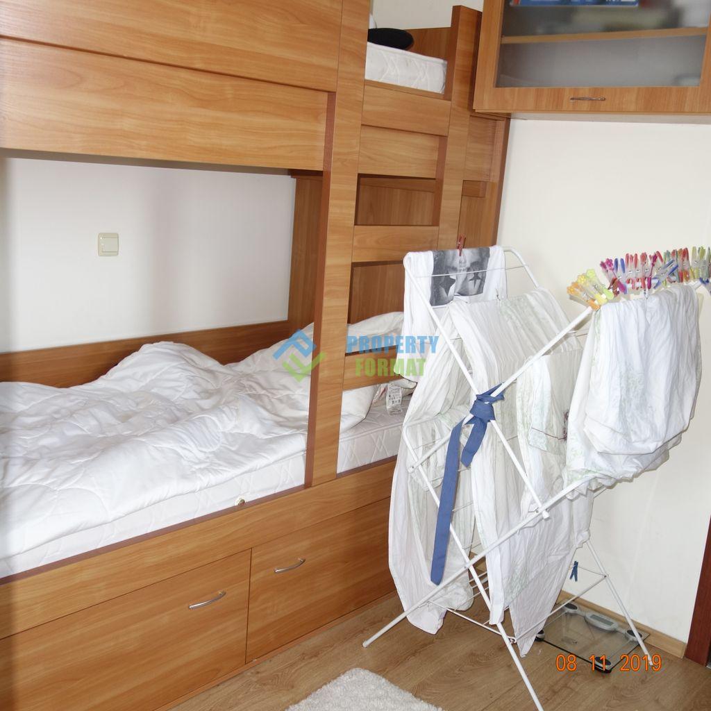 Sold the apartment consists of a hallway, a small living room with kitchenette, from which there is access to a large wooden gazebo, a separate children's room with bunk bed and window, separate bedroom, bathroom and terrace overlooking the sea and the lighthouse. In fact, the bedroom is divided into two parts – children's and master bedroom with sliding door. There are two air-conditioned, furniture, fitted appliances, kitchen set, fridge, washing machine, bedding and kitchen utensils. The apartment can easily accommodate 6 people.