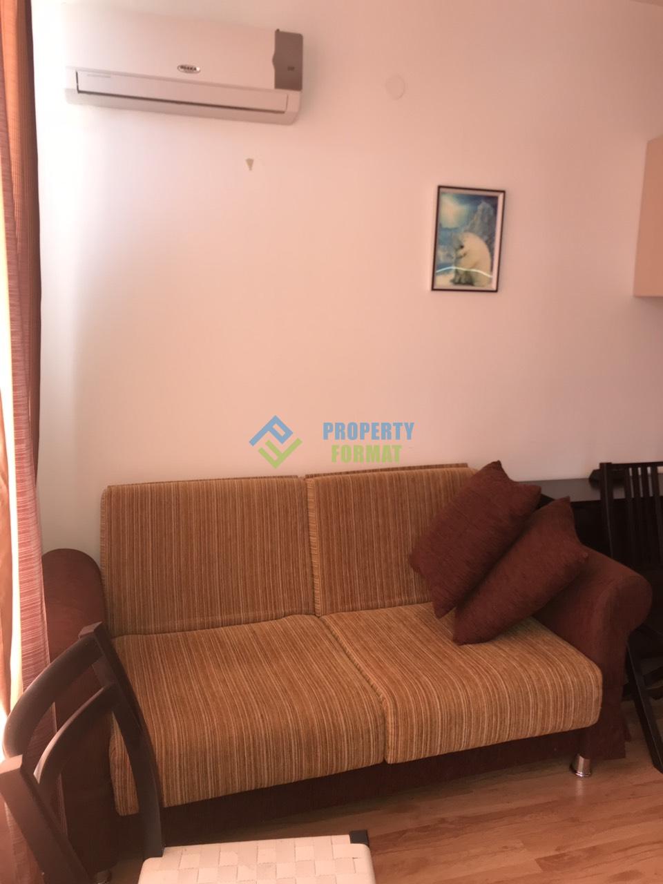 Cheap apartment with area of 37 sqm provided with all necessary furniture. Kitchen area equipped with appliances. The bathroom has a shower, sink, toilet, washing machine. Spacious terrace where you can sunbathe, suggests a view of the surrounding area and the complex.