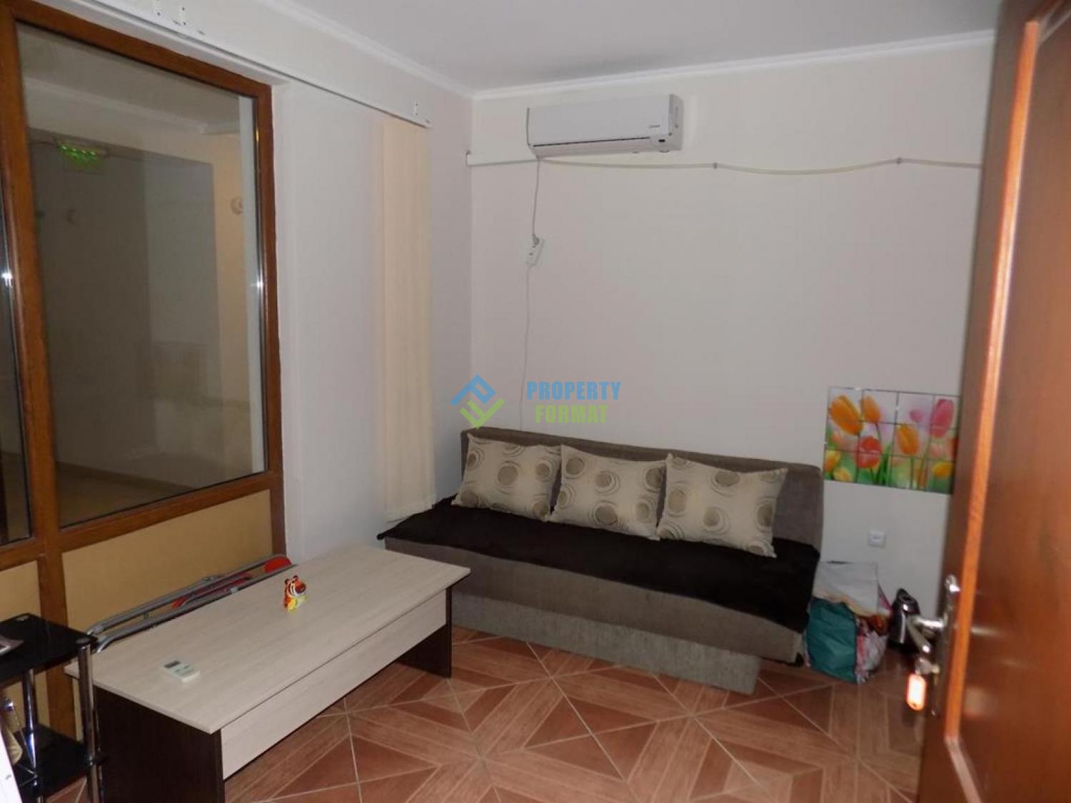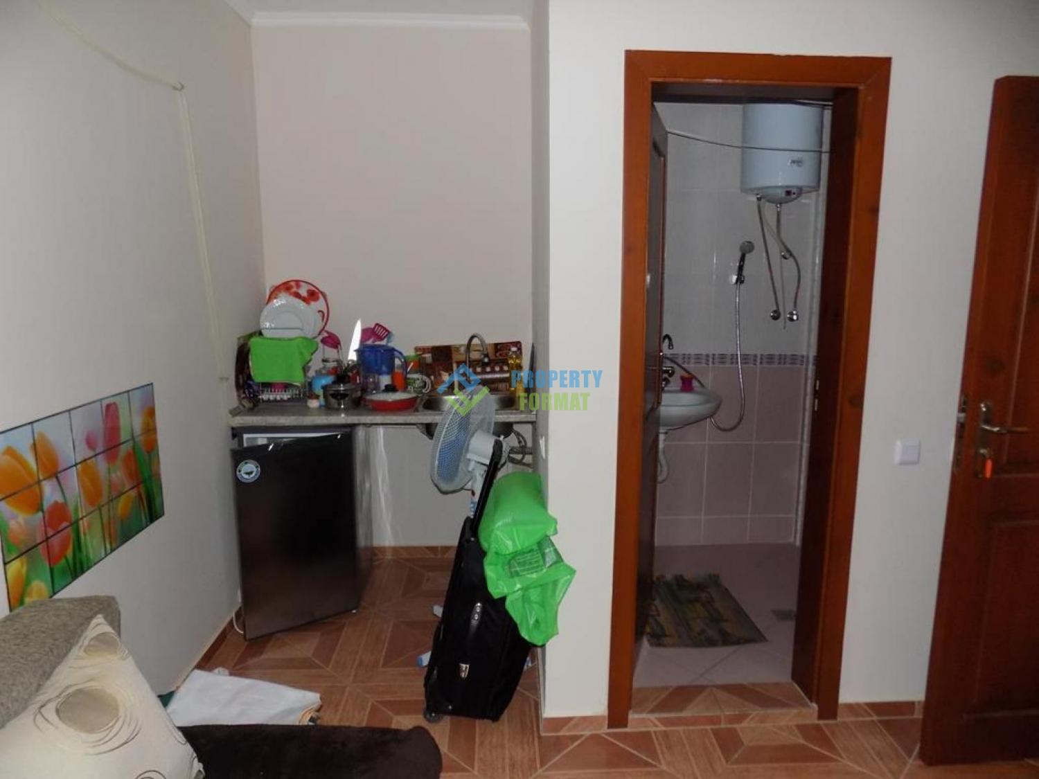 Budget apartment of 18 sq. m. sold with furniture, fridge, water heater and air conditioning. The bathroom is equipped with all necessary accessories. The apartment has no balcony, the window out onto the landing, views of the sea and Sunny beach.