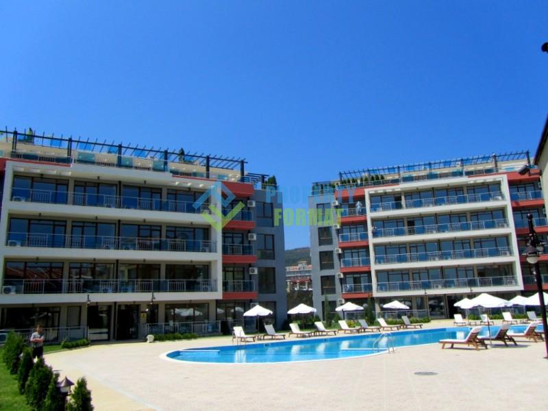 For sale a compact apartment on the beachfront in the complex Sun Wave, a 10-minute walk from the centre of the resort of St. Vlas.
