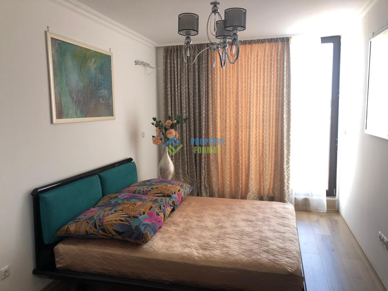 Elegant one bedroom apartment has a strict interior, fully furnished with luxury furniture for perfect relaxation. Of electrical appliances in the presence of an electric stove, oven, refrigerator, TV, air conditioning. The bathroom has the usual fixtures. The terrace offers beautiful views of the sea.
