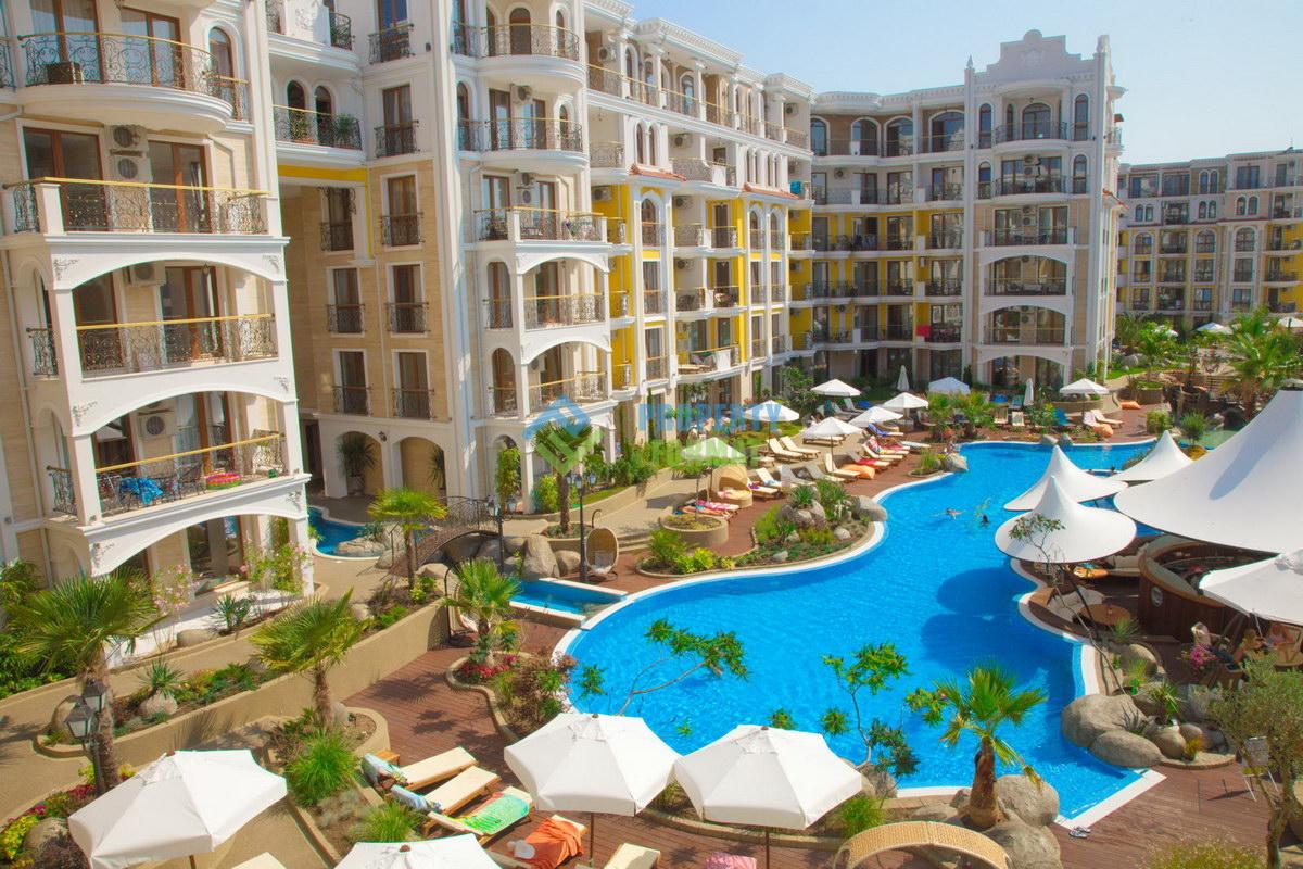 For lovers of majestic luxury one-bedroom apartment in complex Harmony Suites-Monte Carlo, located close to the centre of the famous Bulgarian resort Sunny beach, 5 minutes walk from the sea.
