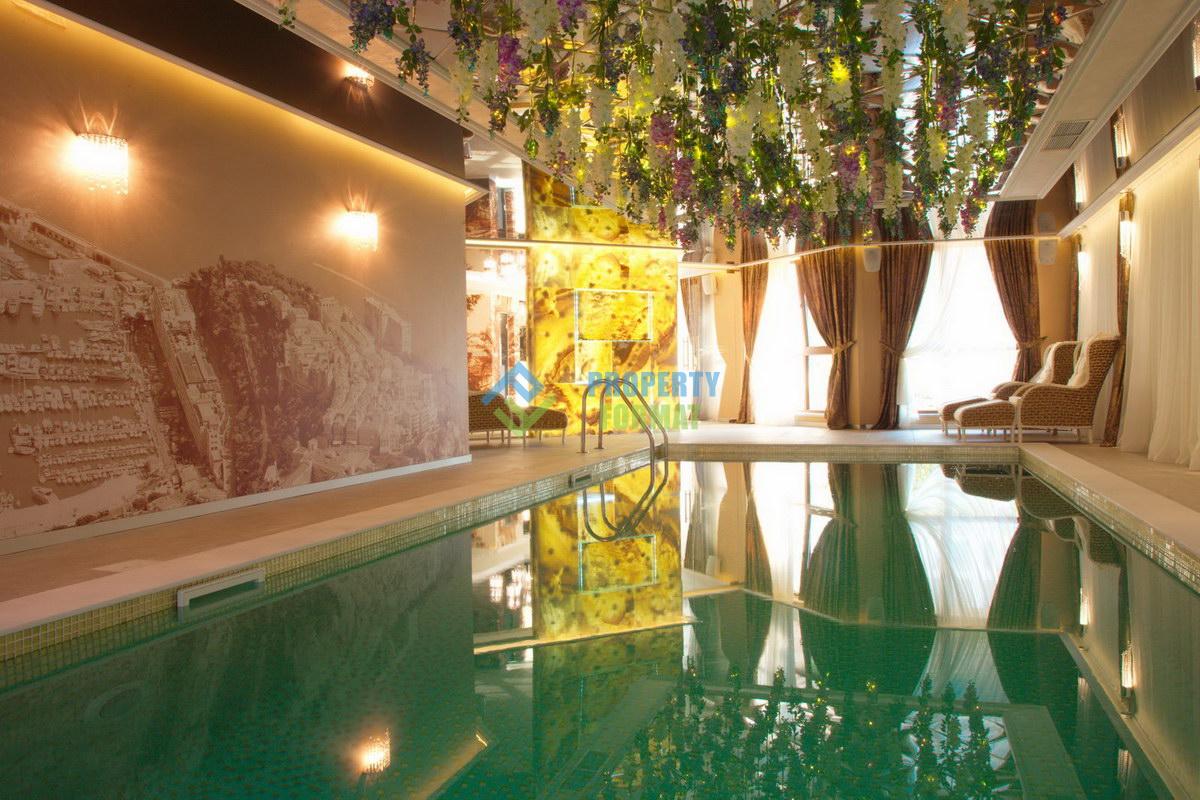 Luxury complex consists of two buildings connected by a graceful arch. Architectural decision made in a special rare style of Monte Carlo, which distinguishes the complex among other buildings. Well landscaped grounds with a large swimming pool, hammocks, gazebos, fountains, mini water Park for children, Spa centre, restaurant, billiard room – all features and not only.