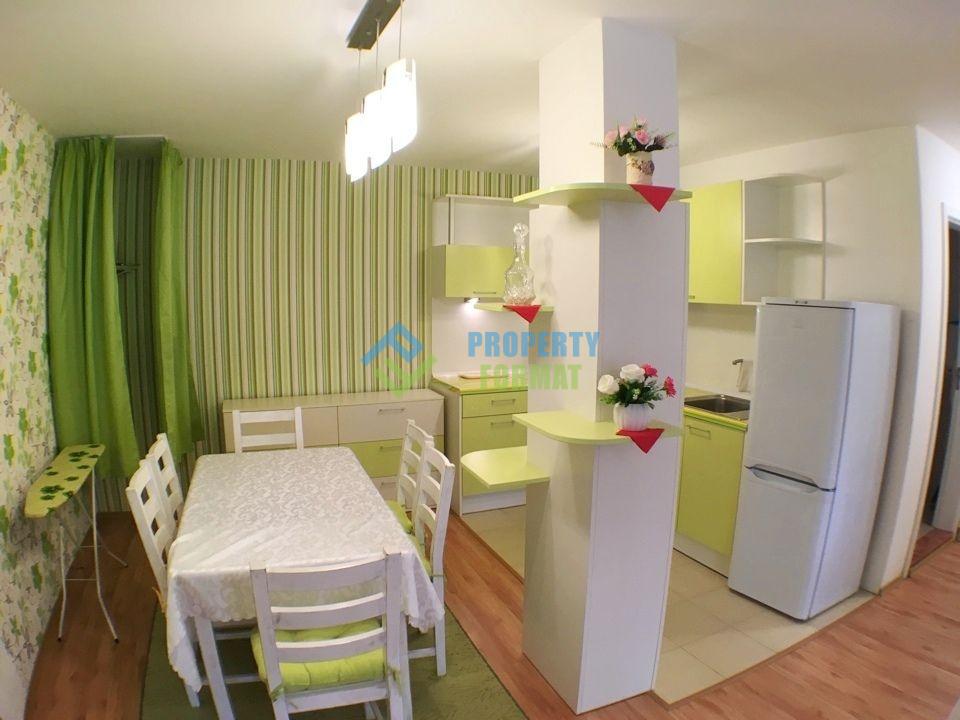 The apartment is equipped with green and beige colors what is the source of good mood. Has everything for a comfortable stay. The layout includes a spacious living room with kitchen area, separate bedroom, bathroom with WC and English courtyard. Other facilities include TV, refrigerator, air conditioning, electric kettle, washing machine, dryer.