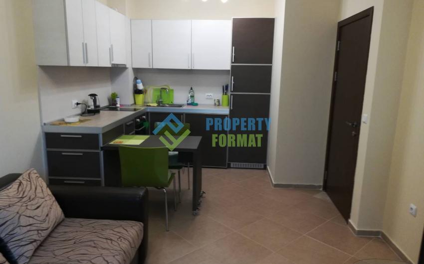 In one of the central resorts of Bulgaria, in the city of Sunny Beach, an apartment with one bedroom is for sale. The apartment is quite spacious, located on the 3rd floor. It includes a living room with a kitchen unit, a separate bedroom, a bathroom and a balcony. The apartment is fully furnished and equipped with a full technical set.