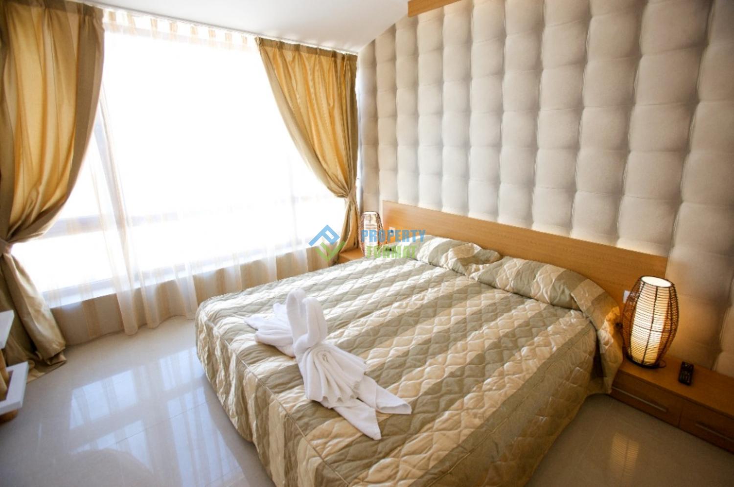 Complex Emerald Paradise is situated in the heart of Sunny beach in a quiet and peaceful area with good infrastructure. In the immediate vicinity You can find everything you need for real rest, for example: shops, bars, restaurants, casinos, discos, water Park, go-karting, paintball, bowling, Billiards, a panoramic helicopter ride, etc.