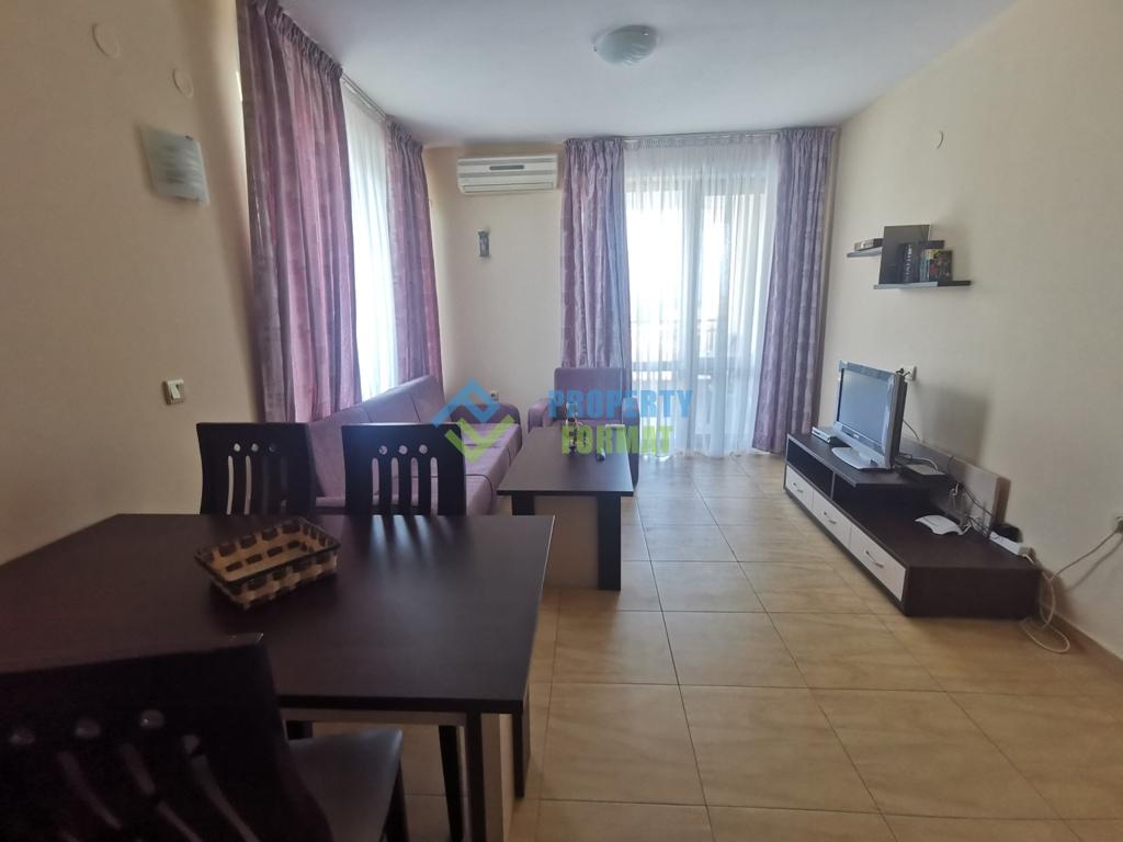 The apartment is furnished with modern furniture and appliances. This is a unique offer due to its location. Silence, tranquility, proximity to the sea and to the entertainment and infrastructure of the resort - all these are the advantages of this facility. The maintenance fee is only 9 euros per square meter. The common parts of the building are in excellent condition. The complex has a lobby, a swimming pool with an adult and children's area, sun loungers, umbrellas, tents and a supermarket.