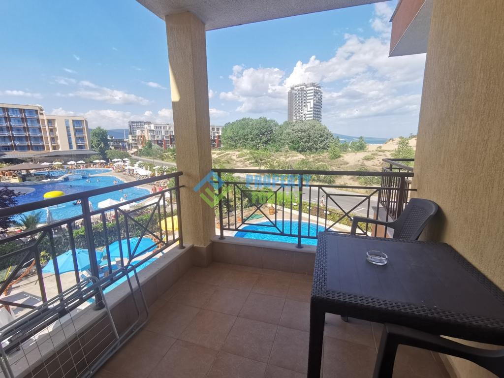 For sale a beautiful one-bedroom apartment on the first line with sea views in the complex Golden Beach. The apartment is located on the middle third floor and has a good layout. The balcony of the apartment overlooks the pool, protected dunes and the sea.
