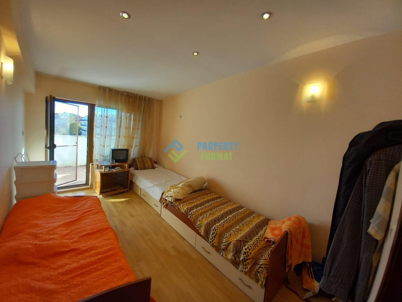 We present for sale an apartment in a residential building, in close proximity to one of the best water parks on the Black Sea coast. The building is located in a very communicative area, where there is everything necessary for permanent residence: MM supermarket, clinic, restaurants, bank branches, bus station.