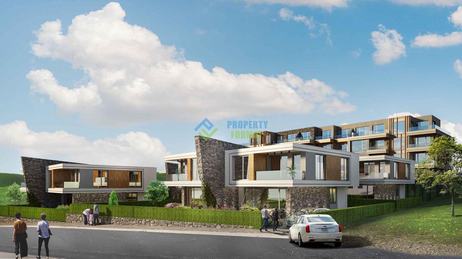 The architecture is a combination of glass, stone and wood, with a focus on greenery. Gradual landscaping of the entire undeveloped area is planned. It is possible to purchase parking lots or garages. Modern and high quality construction and use of high quality materials. Residential complex without tax support.