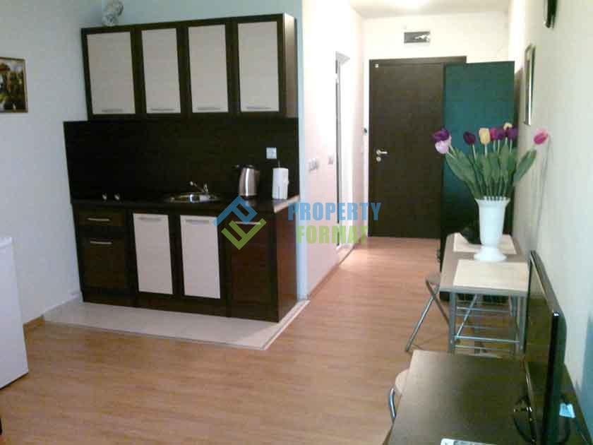 Sold Studio of 29 sq m neat and clean, has the necessary furniture and appliances. Air conditioning and a TV. The balcony offers views of the area. The combination of modern design, cozy atmosphere and impeccable service will give you an unforgettable holiday on the Bulgarian coast at all seasons of the year.