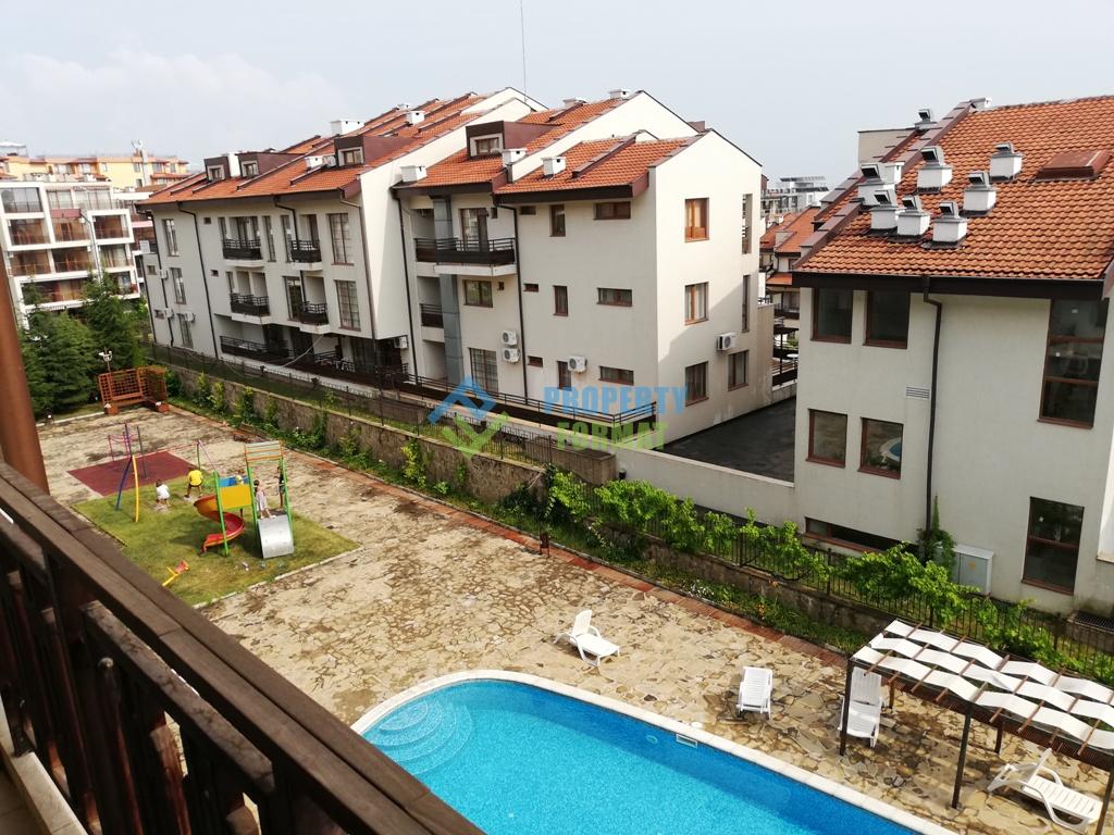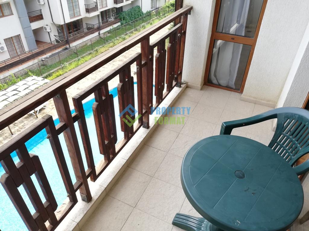 Apartment with separate bedroom comes with almost new furniture and all necessary appliances for a convenient and comfortable stay. The bathroom has a shower, sink, toilet. A cosy terrace provides for spiritual gatherings with views of the grounds and pool complex.