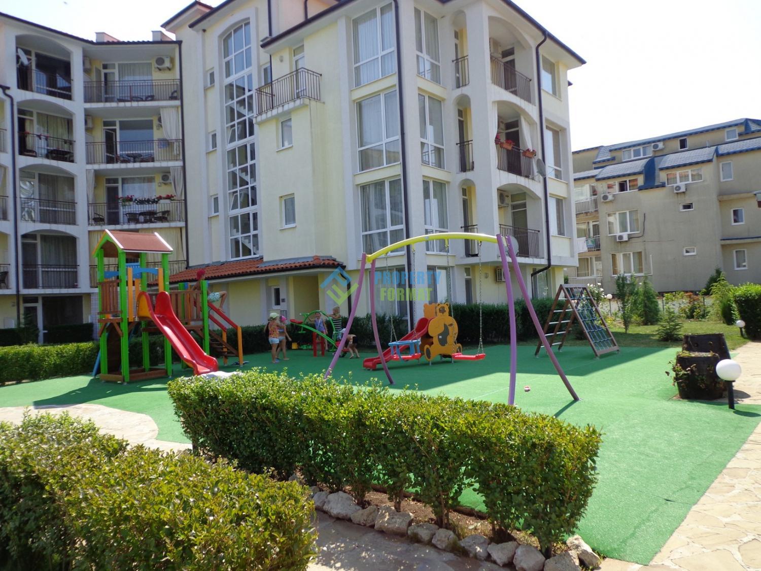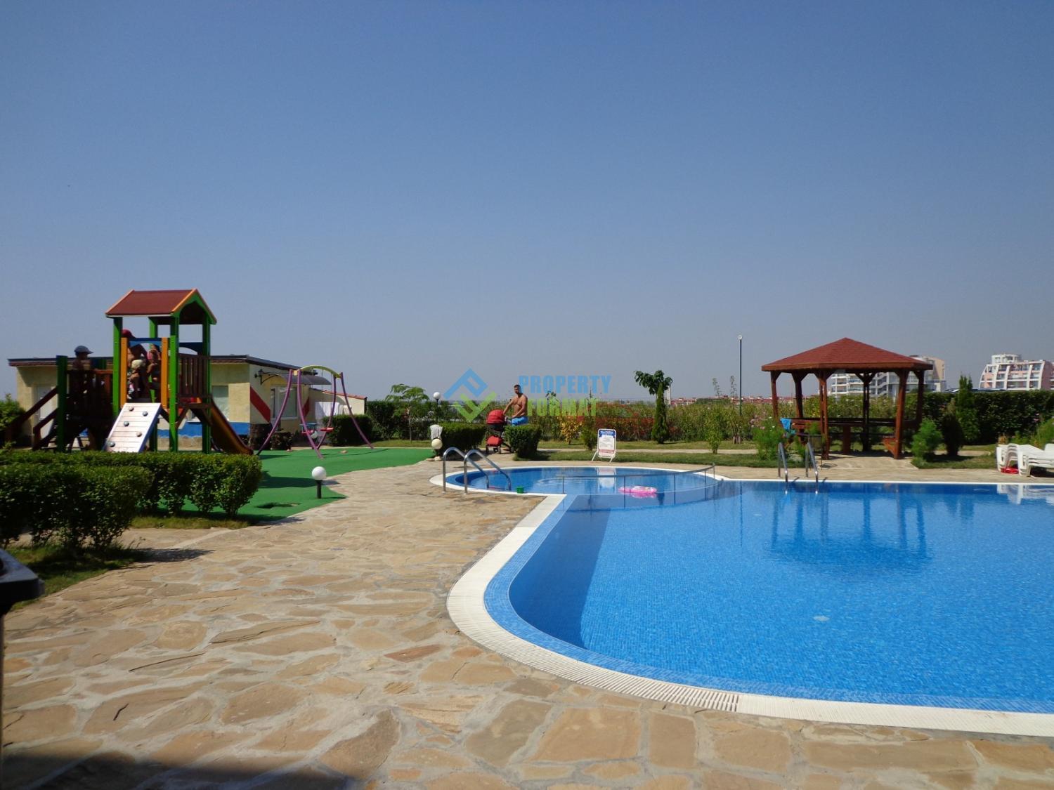 Apartment complex has a P-shape is made in the traditional Bulgarian architectural style and is comprised of sections from three to five storeys. Well-maintained landscaped grounds offer residents an outdoor swimming pool with children's compartment area for sunbathing and relaxation with sun loungers, shop, Playground, Parking, video surveillance and security.
