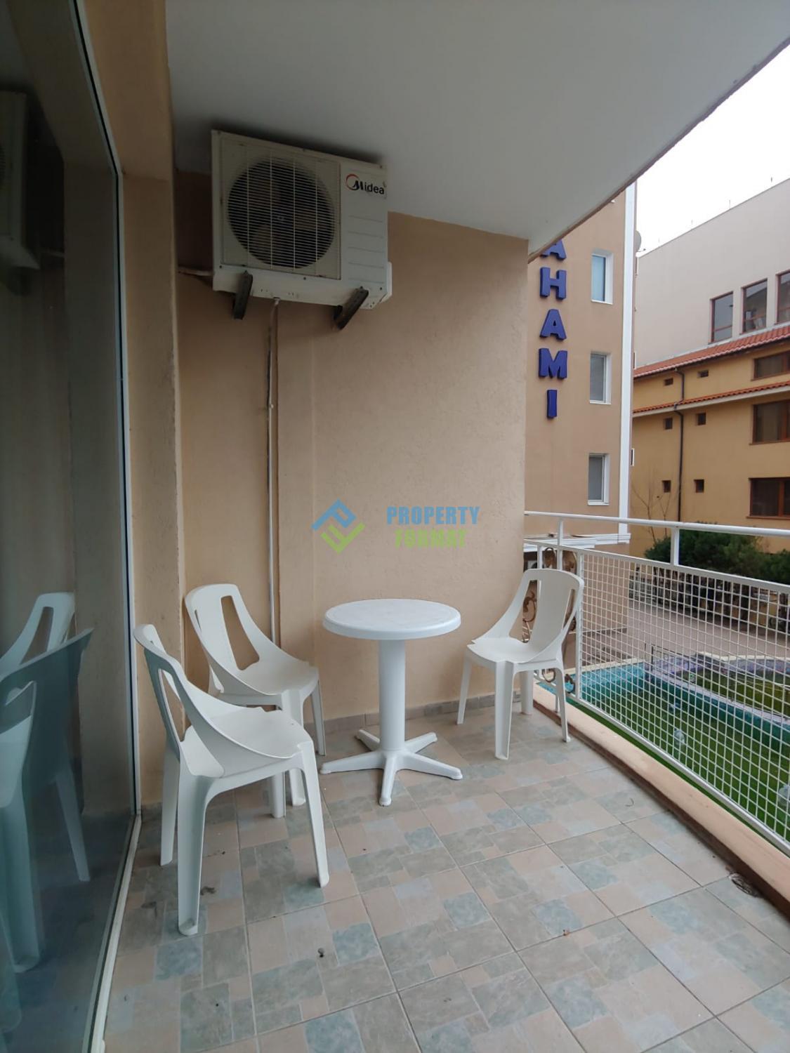 We offer you studios in the Bahami complex in the quiet center of Sunny Beach. The studios are located on the 2,3 and 4 floors and differ slightly in furniture, the size of the balcony and the view from the window. There is one studio on the fourth floor, equipped with a small kitchen. The kitchen installation team can do everything without your presence with good quality and with a budget of 300 euros. The apartments are not equipped with a boiler, a turnkey installation with a water meter will cost 500 euros, you will also need to issue a partida for electricity. The six-storey building has a landscaped area, an outdoor swimming pool for adults and children, a sunbathing and relaxation area with sun loungers, a restaurant, a bar, round-the-clock security. Owners can purchase their own parking space for 4500 euros.