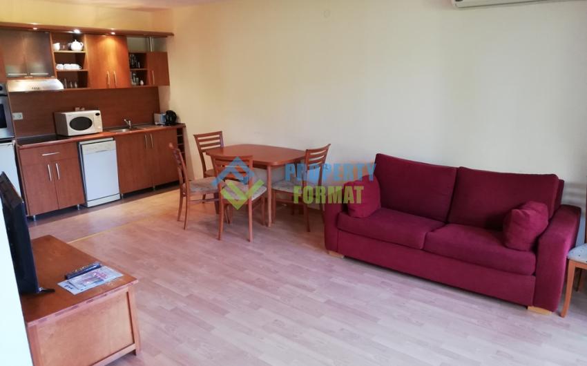 Beautiful Green Fort complex along with the selling apartment is located surrounded by forest and mountains of the Northern part of Sunny beach resort, on the border with the resort of St. Vlas, 200 metres from the sea and the beach. Here, we offer you to buy a one bedroom apartment with all amenities for living and holiday in Bulgaria on the coast. In the immediate vicinity of the complex there are restaurants, shops, various attractions and entertainment.