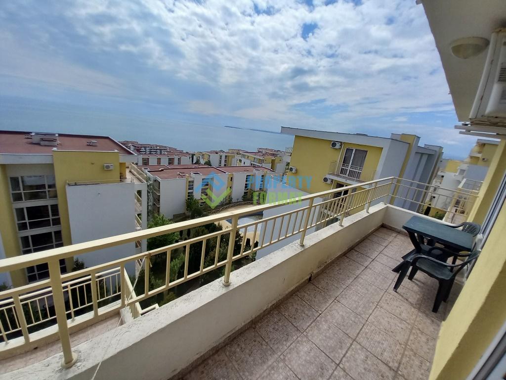 A three-room apartment for sale in the Crown Fort complex, Sveti Vlas, at an attractive price. Its area is: 103 sq.m. It consists of a living room with a kitchenette, 2 bedrooms, a bathroom with a toilet and a terrace with a breathtaking view.