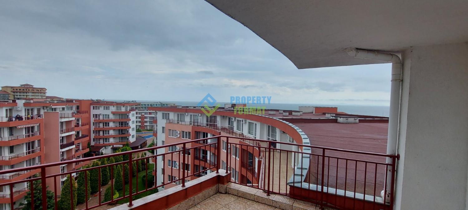 The apartment for sale is furnished and has the necessary household appliances, it has two bathrooms and two terraces. The spacious terrace offers a wonderful view of the endless expanses of the sea and the territory of the complex with swimming pools. There is access to the roof.