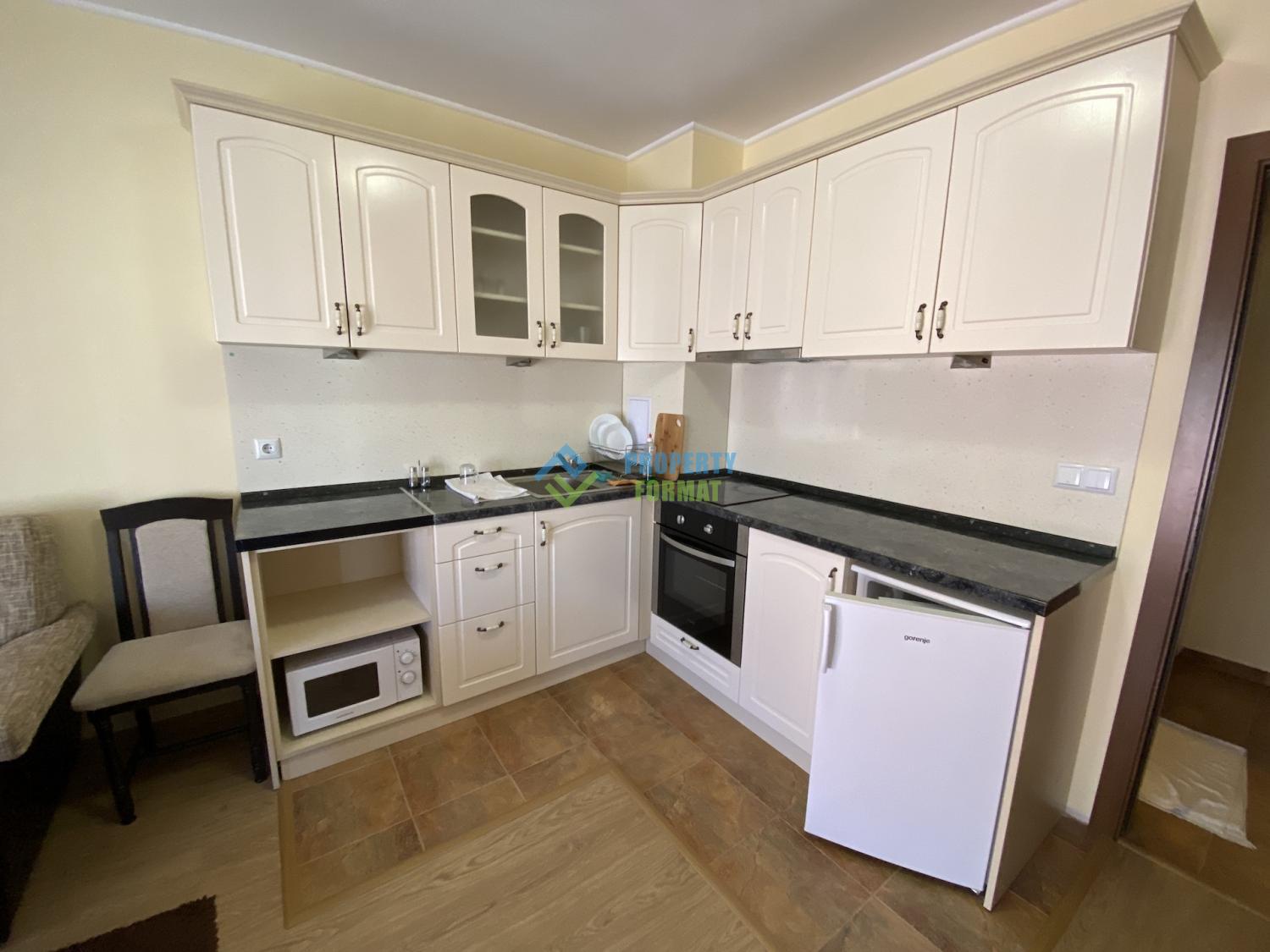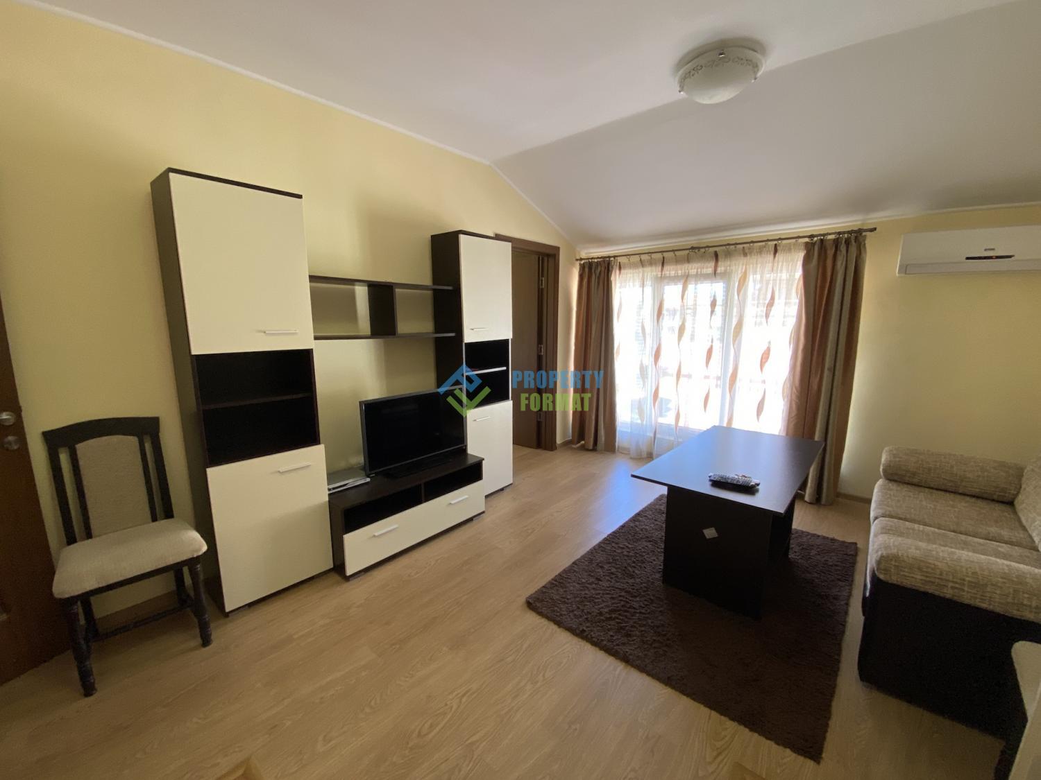 A two-room apartment in a residential building without a support fee is offered in Nessebar in the Cherno More quarter. The apartment consists of a corridor, a room, a bedroom, a bathroom and a balcony. Next to the house you can always find a Parking place. The apartment is equipped with all necessary furniture.