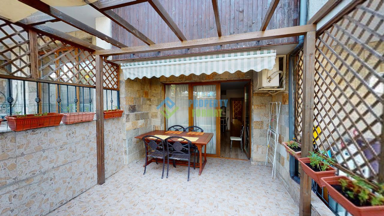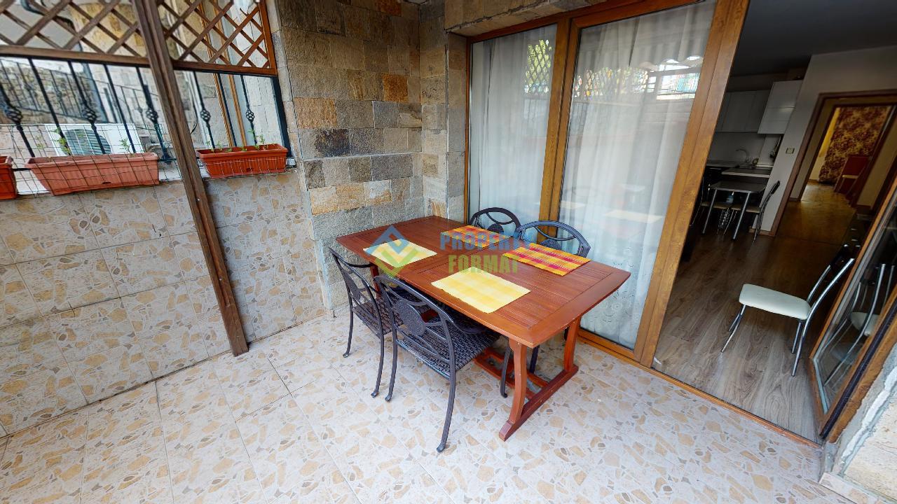 The apartment is 66 sq. m, and is located on the ground floor with access to a huge terrace, where it is pleasant to spend time on summer days. The apartment is equipped with modern appliances and furniture, consists of a living room with a kitchen, a corridor, a bedroom and a spacious bathroom.