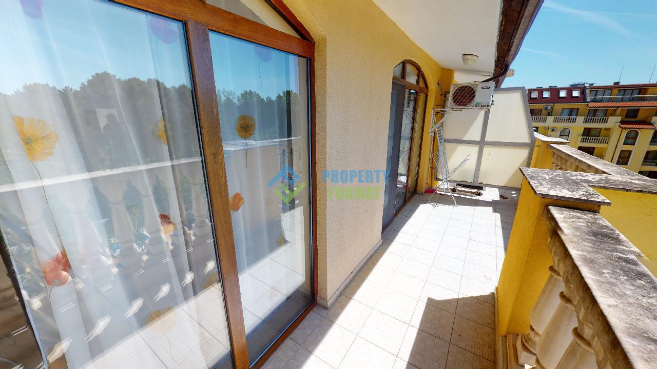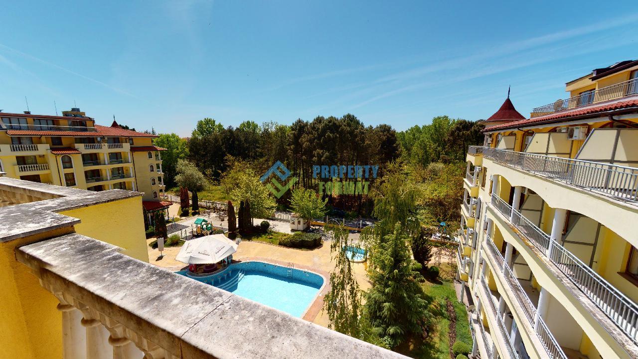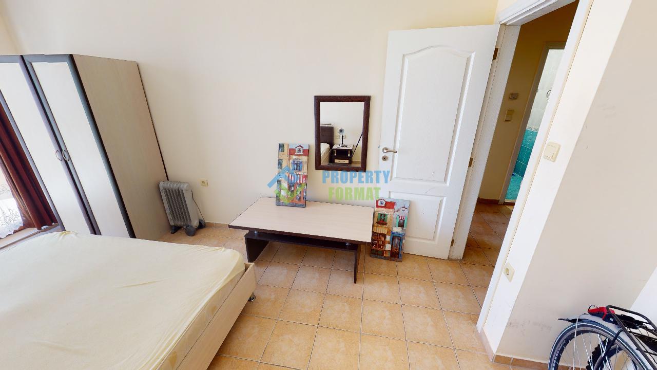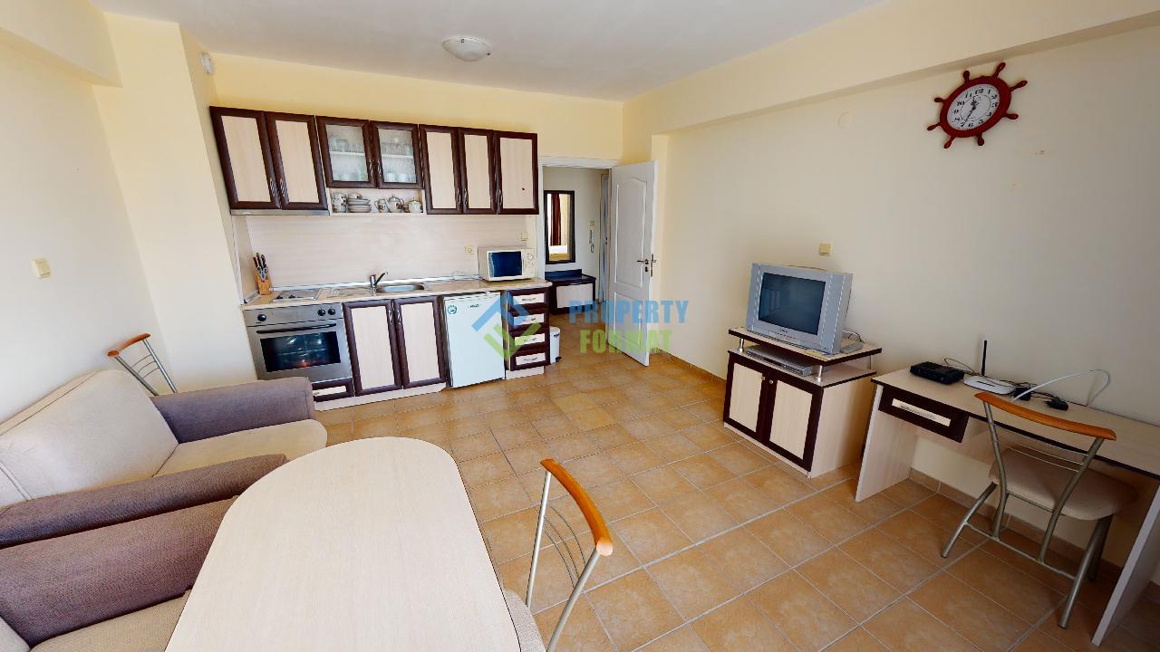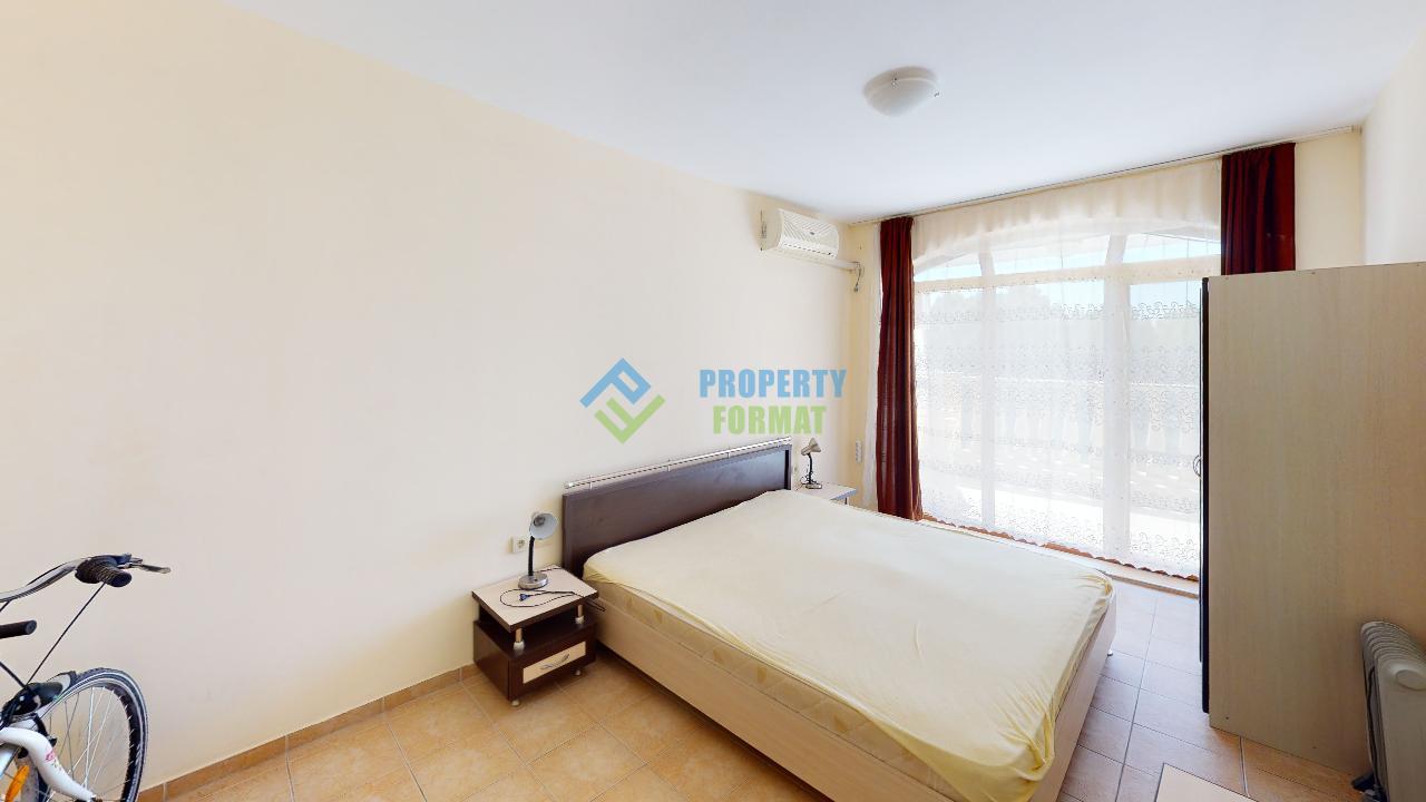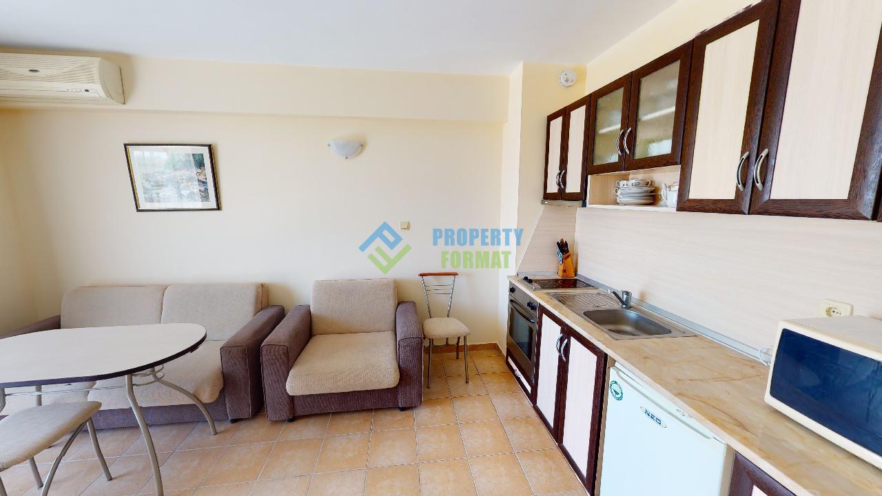 We present to your attention an apartment with 1 bedroom in Sunny Beach, not far from its central part. The layout of the apartment includes a spacious kitchen-living room, a bedroom, a bathroom with a bath, a terrace. The apartment is fully furnished and has everything you need for living. The balcony offers a beautiful view of the pool and green grove.
