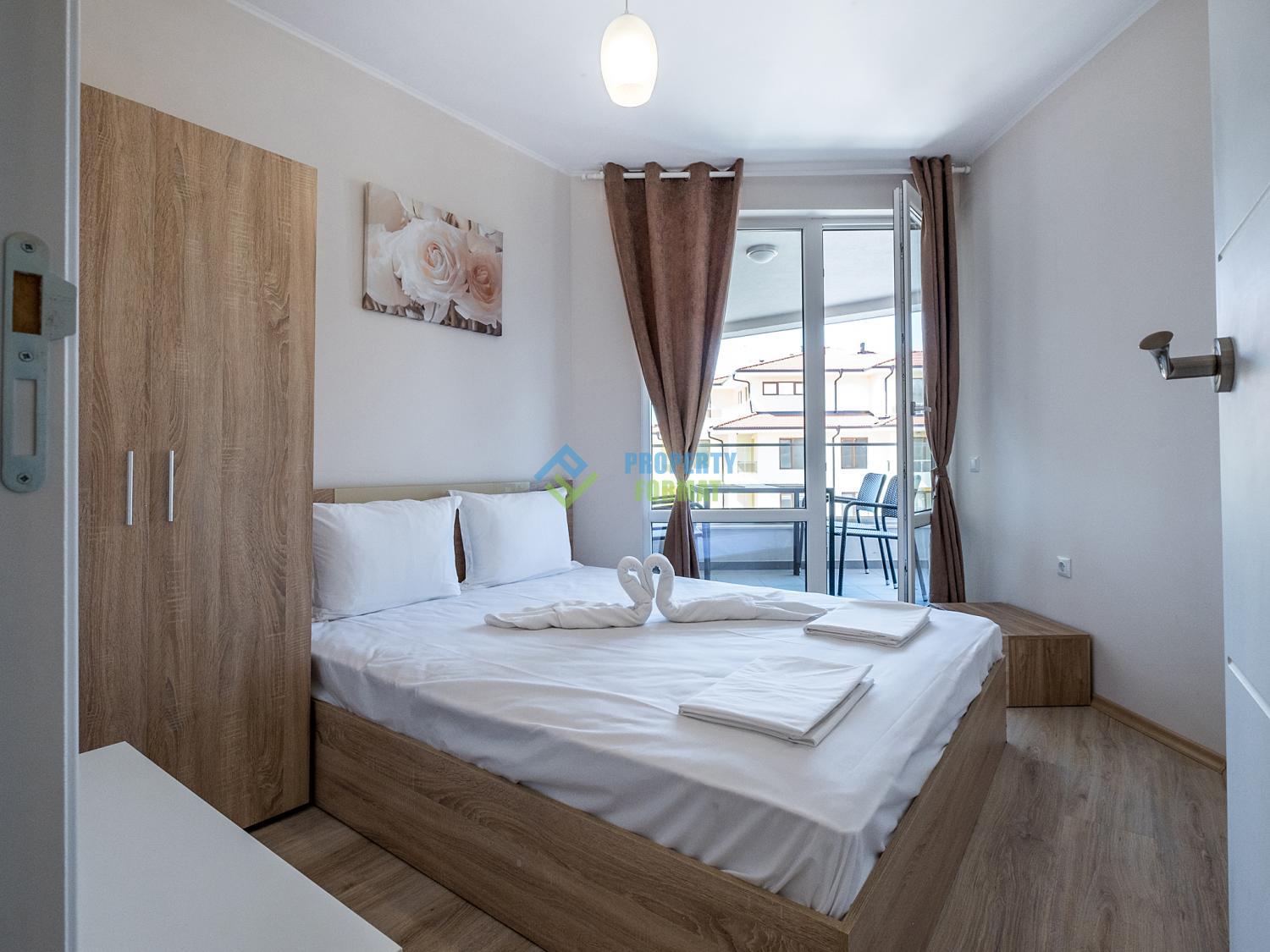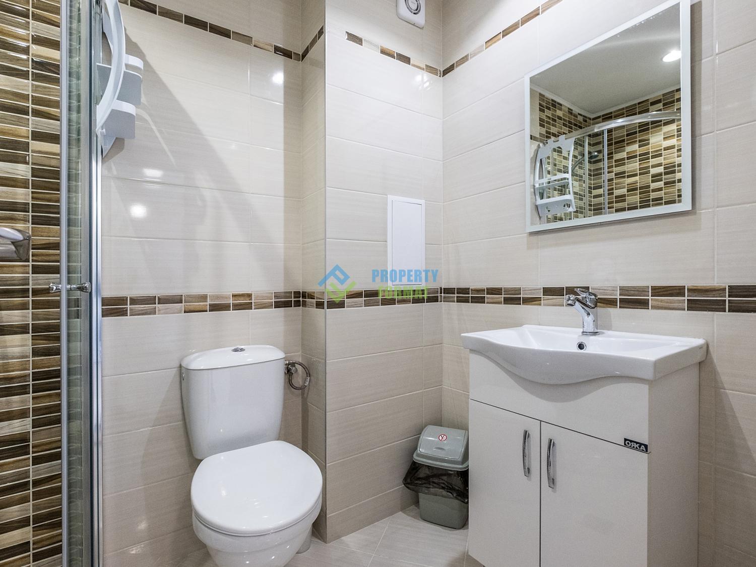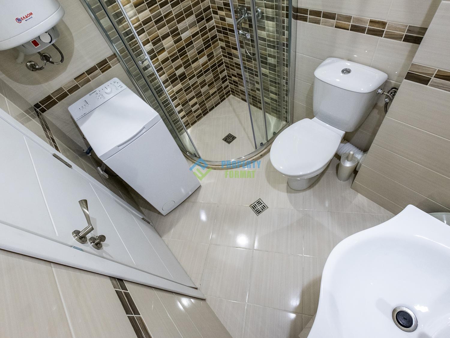 Планировка апартаментов включает в себя кухонную зону, переходящую в гостиную, отдельную спальню, ванную комнату укомплектованную сантехникой и просторную террасу. Имеется вся необходимая мебель и техника. С балкона вы не устанете наблюдать на панораму города и морские горизонты.