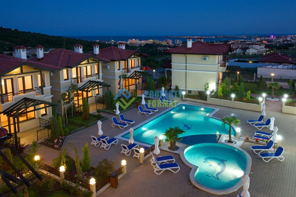 В комплексе для пользования имеется бассейн с двумя секциями, спортивная площадка, детская площадка, личные парковки для каждого дома и гостевые парковки.