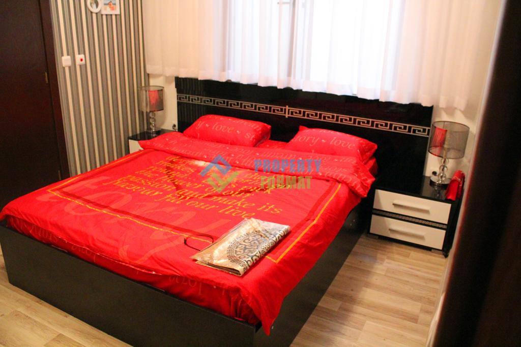 Солидный апартамент с двумя спальнями площадью в 100 кв.м полностью обставлен мебелью. В гостиной совмещенной с кухней в наличии электроплита, вытяжка, мультиварка, тостер, электрочайник, соковыжималка, стиральная машина, кондиционер, телевизор. С одной из спален есть выход на личный балкон с обособленной мини зоной отдыха. С гостиной комнаты предусмотрен дополнительный выход на уютную террасу, где возможно проводить время за уютными посиделками, глядя прямо на бассейн комплекса.