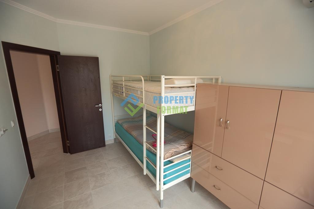 Шикарный апартамент с тремя отдельными спальнями, гостиной с кухонным блоком, гардеробной, двумя ванными комнатами, балконом и собственной парковкой на 2 машины – отличный вариант приобрести жилье в Болгарии для огромной семьи с инвестицией в светлое будущее.