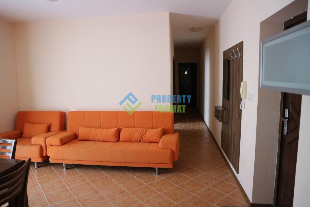 Продаваемая квартира оборудована необходимыми элементами для жизни и отдыха: мебель, бытовая техника, кухонные и спальные принадлежности. Планировка: гостиная с кухней, две спальни, совмещенный санузел, балкон с видом на бассейн и зеленые окрестности. Выгодная инвестиция для того, чтобы получать удовольствие от жизни и отдыха на море круглогодично.