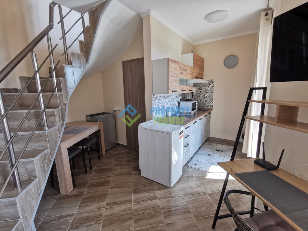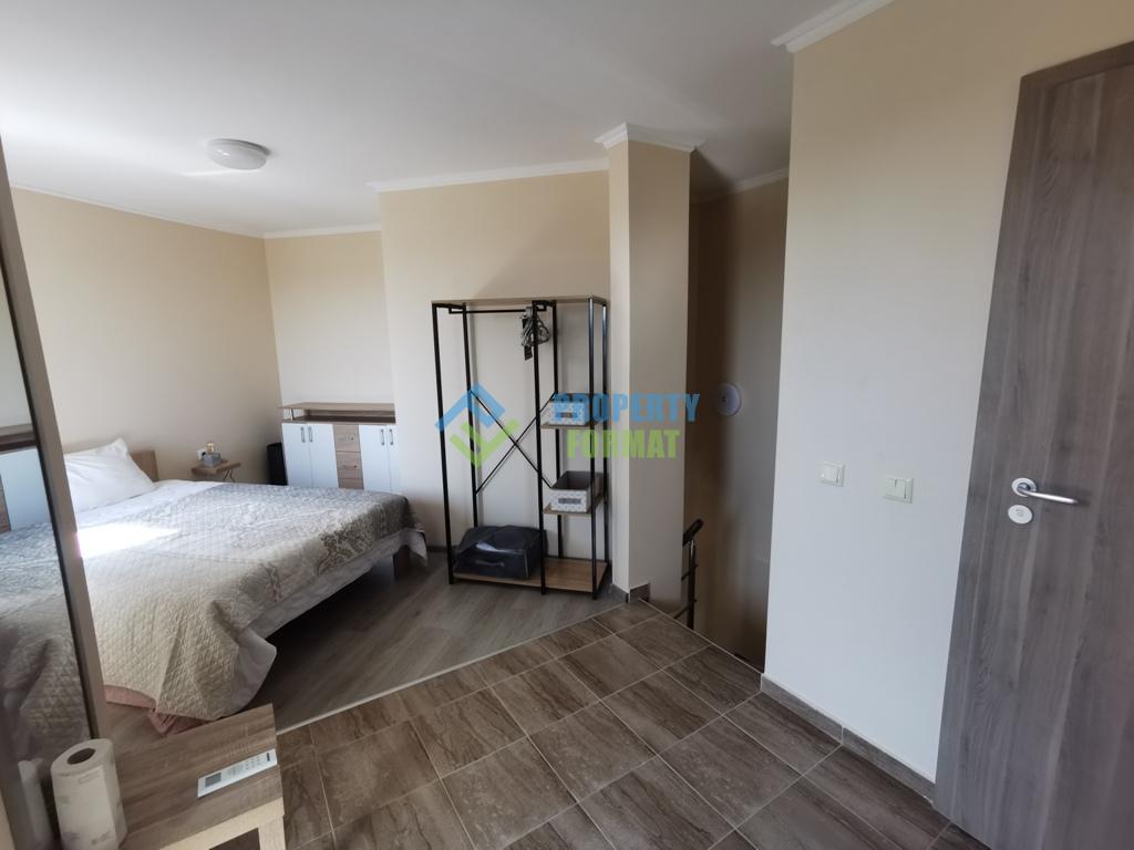 Предлагаем Вам двухкомнатная квартира, мезонет в Vip Vision, Солнечный Берег. Расположена на 5 и 6 этаже, площадь 52 кв.м. Квартира двухуровневая, на 5 этаже расположены диваны, телевизор, творческая зона и оборудованная мини-кухня и терраса с видом на бассейн. На 6 этаже спальня с комодами, ванная комната с душевой кабиной и зеркалом с ледяной подсветкой, кондиционер и панорамная терраса. Такса обслуживания 10 евро/кв.м.