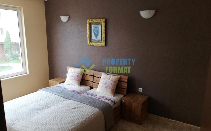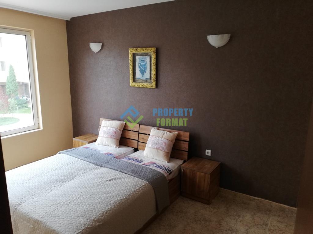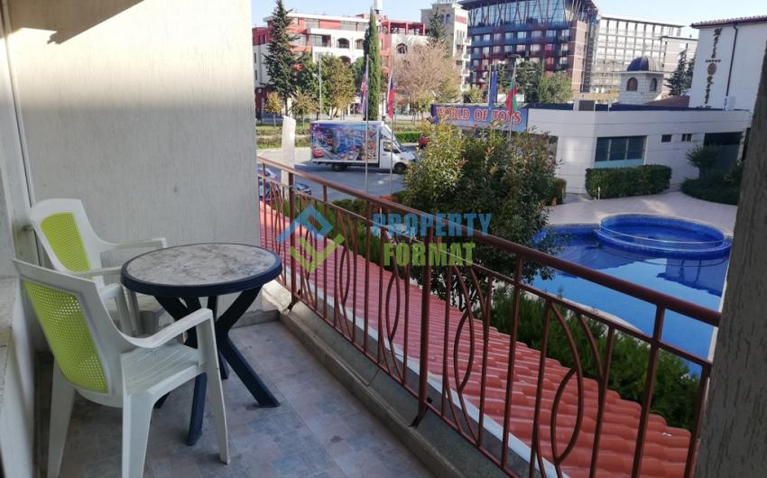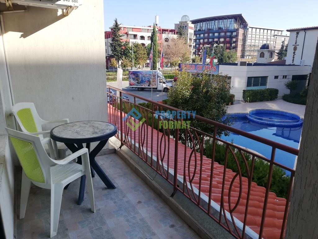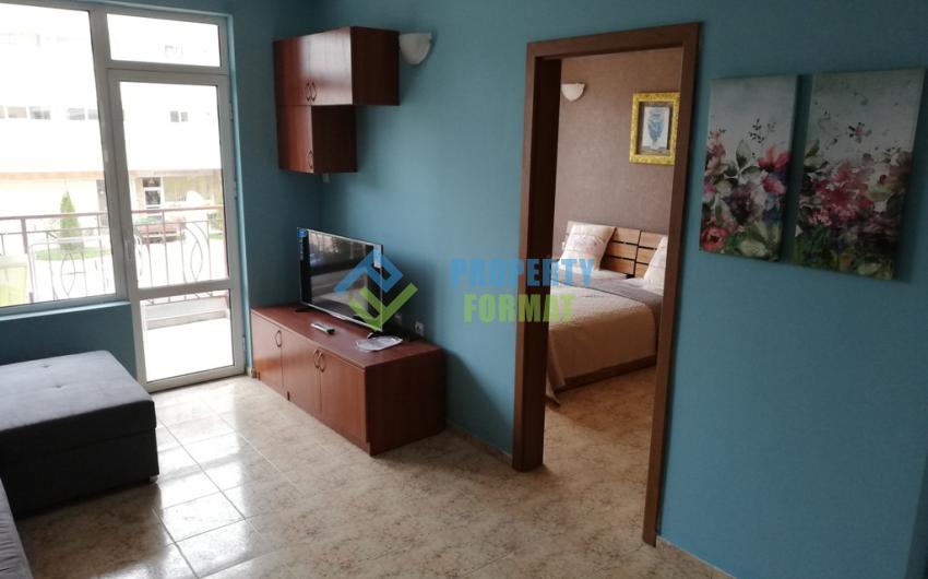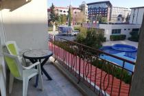 В квартире предусмотрена прихожая, гостиная с кухонной частью, две отдельных комнаты-спальни, совмещенный санузел и балкон с видом на бассейн. Апартамент меблирован и располагает некоторой бытовой техникой. Хороший вариант, который подойдет для приятного летнего семейного отдыха, а также постоянного проживания.
