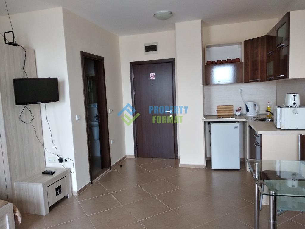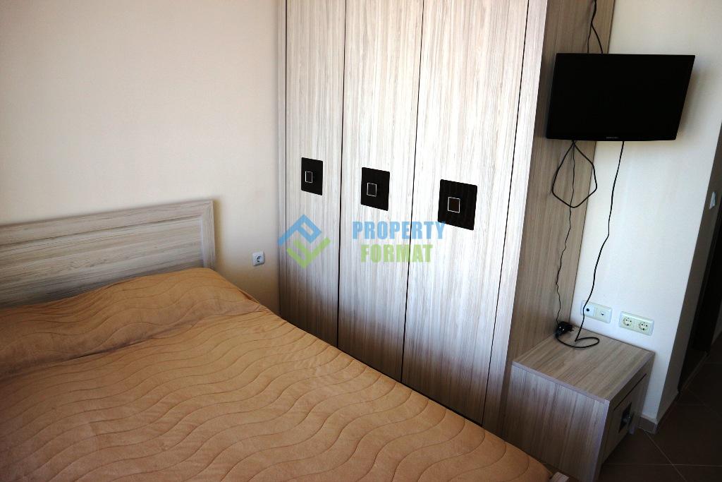 Уютная квартира продается по весьма приемлемой цене, располагает раздвижным диваном и двуспальной кроватью, что уже гарантирует четыре спальных места. Кухонный уголок оборудован плитой, электрочайником, тостером, микроволновой печью, холодильником, установлен кондиционер и телевизор. С просторной террасы можно любоваться прекрасным видом на горный массив Стара Планина.