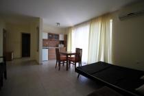 Апартамент с одной спальней располагает нужной мебелью для сна и отдыха. Также в наличии кухонный гарнитур с электроприборами и посудой, оборудованная сантехникой ванная комната. В гостиной установлен кондиционер и телевизор с кабельными каналами. С балкона видна территория комплекса с бассейном.