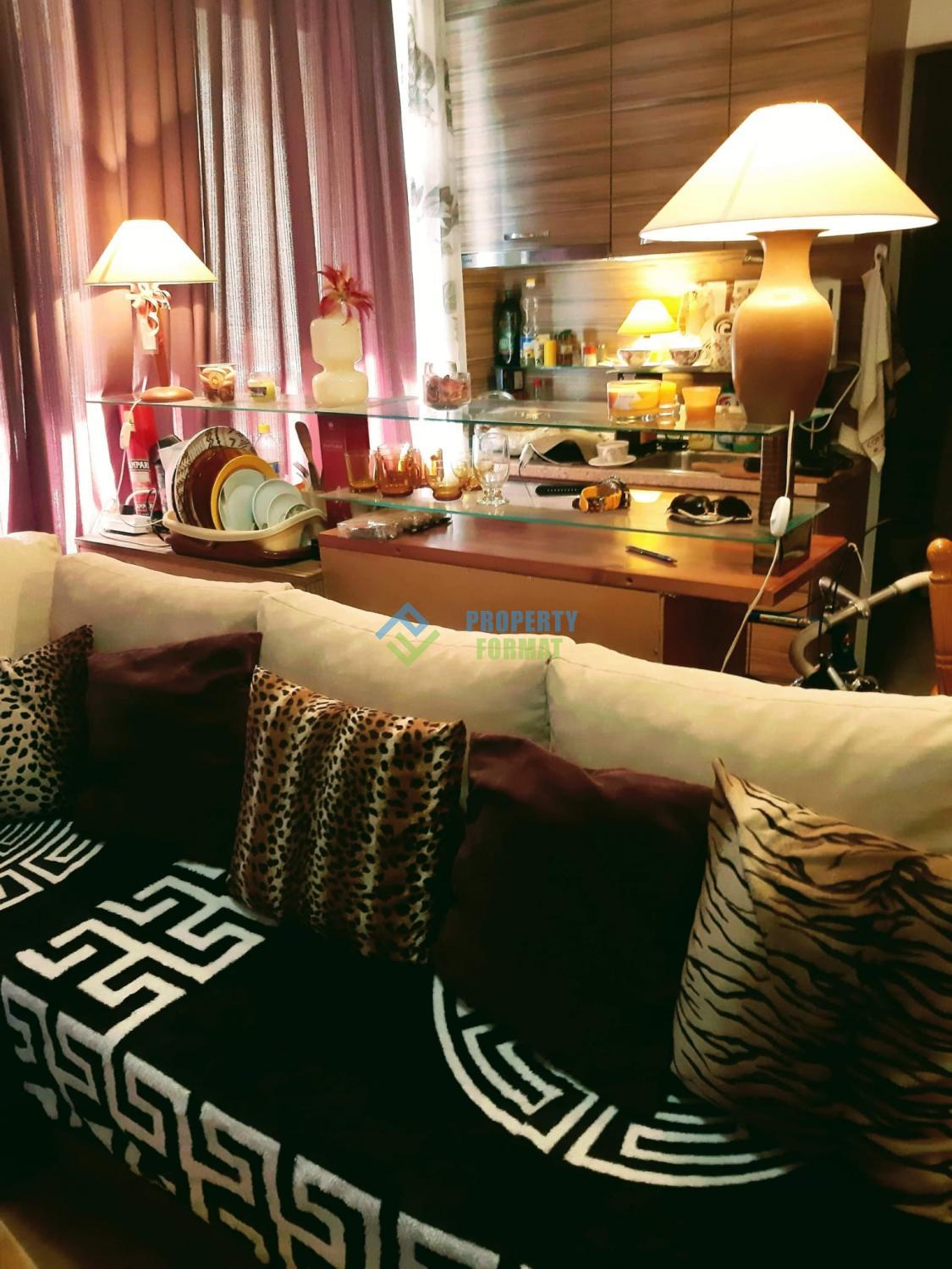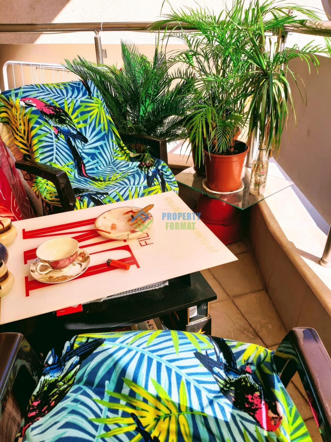 Квартира располагается на втором этаже, площадью 36 кв.м и состоит из уютной гостиной с удобной обеденной зоной, санузла и балкона. Студия не большая, но очень компактная с современной мебелью и техникой. Нет годового обслуживания и это отличный вариант для круглогодичного проживания.