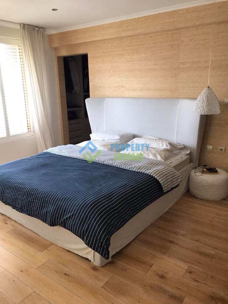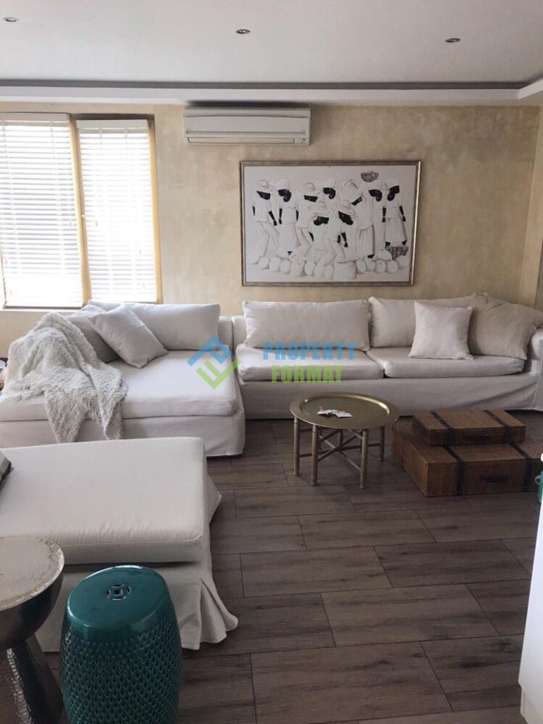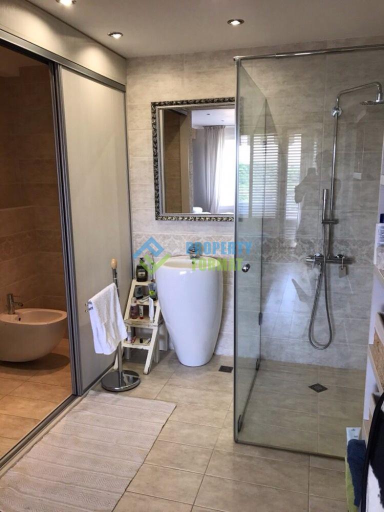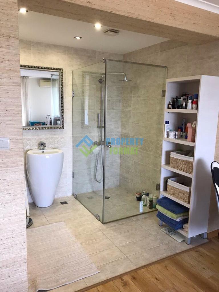 Апартамент площадью 181 кв.м вместил в себе прихожую со шкафом, белоснежную кухонную зону со встроенной техникой, гостиную с мягким уголком, санузел с роскошной ванной и стеклянной душевой, а также прачечную комнату со стиральной машиной и водонагревателем. Стоит отдельно сказать про спальню, которая имеет большую кровать, гардеробную, а также личный санузел с унитазом, биде, раковиной и душевой. На просторной террасе с видом на морское побережье приятно будет отдыхать, распивая любимые напитки.