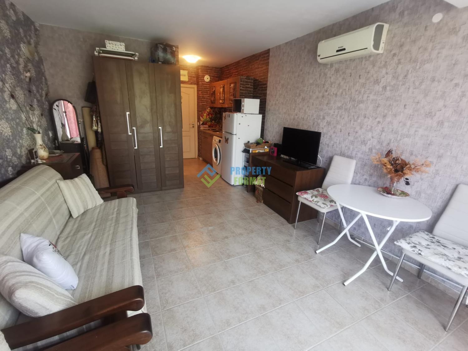 В продаже студия в комплексе Анна Марина, Святой Влас. Квартира общей площадью 32 кв.м находится на партерном этаже с английский двориком. Квартира полностью оборудована мебелью и техникой.