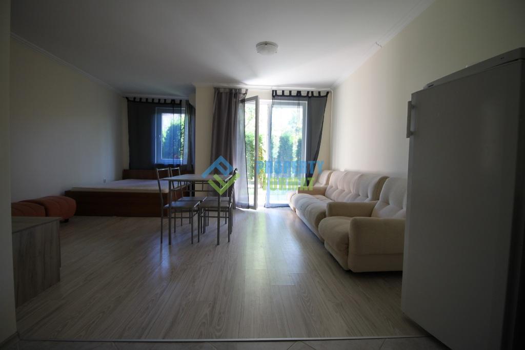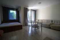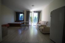 Современная студия оборудована удобным диваном с креслами, двуспальной кроватью, а также небольшим личным двориком, где можно приятно проводить время, в окружении зелени. В квартире установлен кондиционер, кухонная плита, холодильник. Прекрасное место с богатым озеленением, которое очарует вас уютом и красотой.