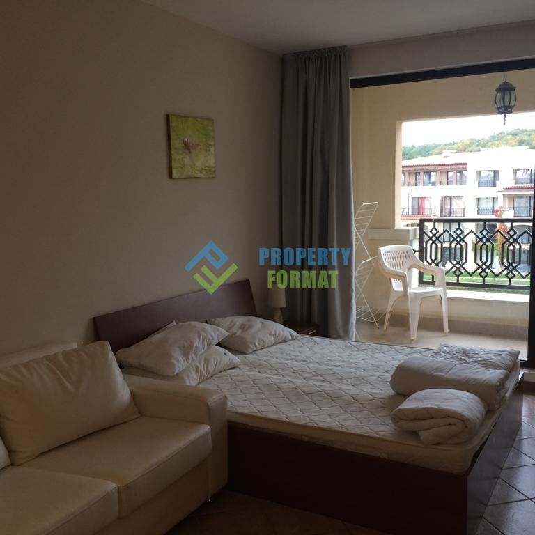 Квартира-студия располагает всем нужным для комфортной жизни: мягкая мебель, бытовая техника, оборудованный санузел, крытый балкон с изумительным видом. Хороший вариант для сдачи в аренду или сезонного отдыха.