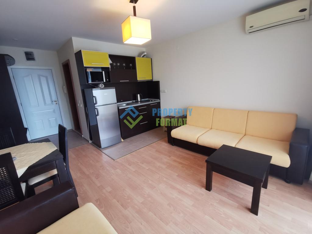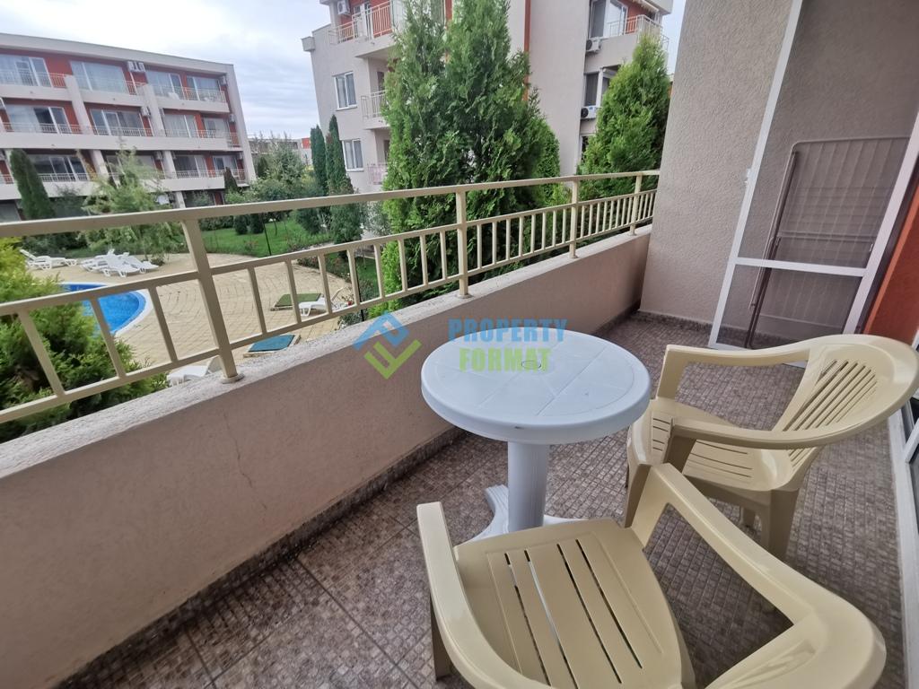 Апартамент в комплексе Nessebar Fort Club продается с мебелью и техникой. Центр города Солнечный берег находится в 500 метрах, песчаный пляж в 800 метрах.