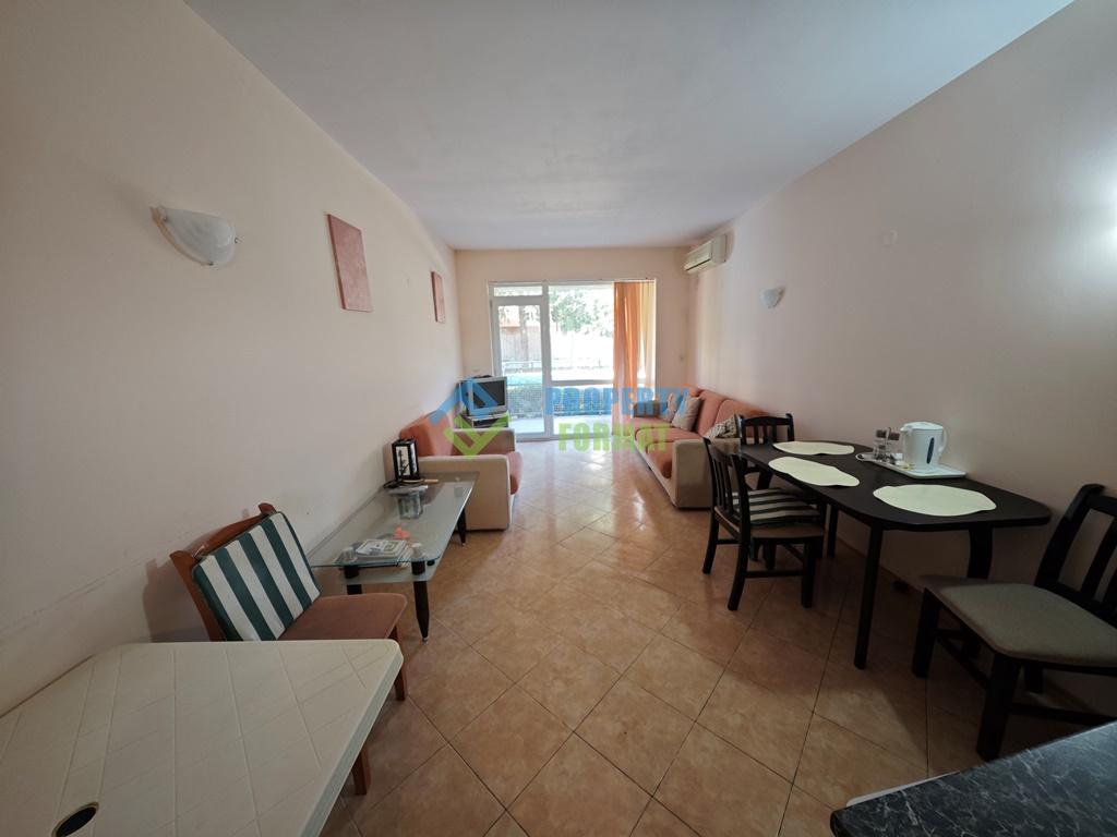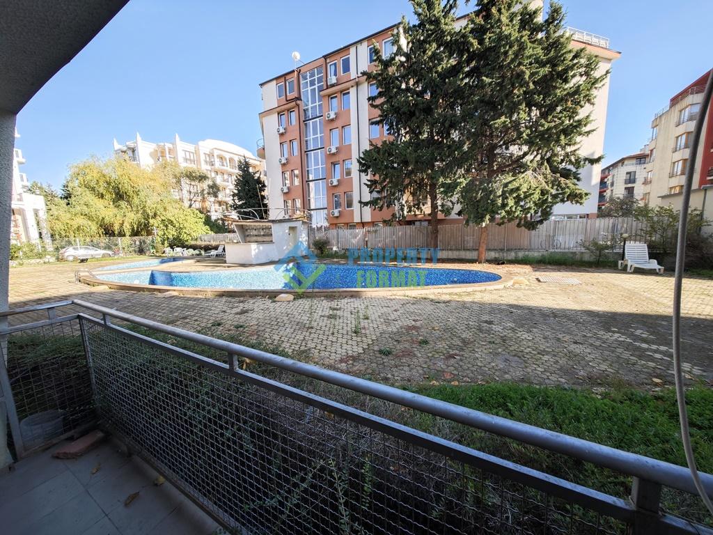 Продается студия 39 кв.м в центре Солнечного Берега. Первый этаж (партер), продается с мебелью и техникой, такса поддержка 113 евро в год.
