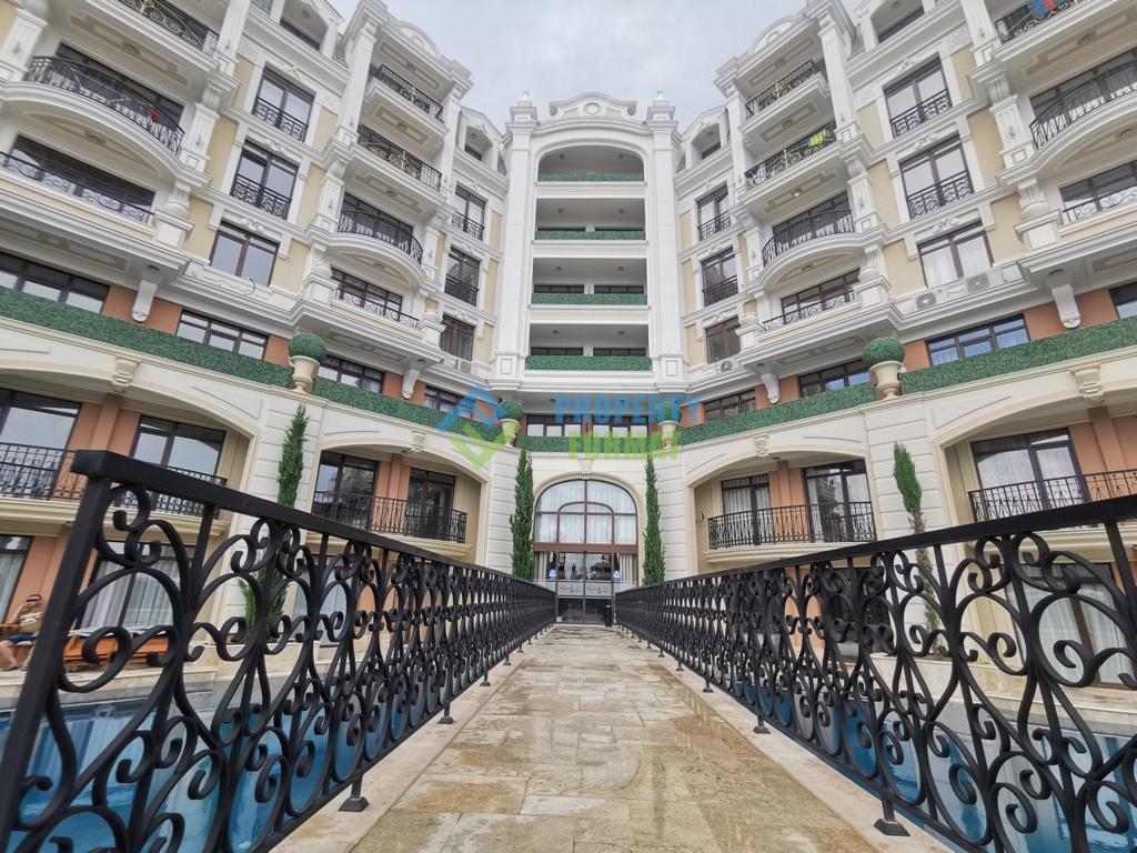Для продажи предлагается студия в комплексе Romance Paris в Святом Власе. Интерьер квартиры выполнен в монохромной гамме, в небольшом кухонном уголке встроен холодильник и стиральная машина. Санузел оборудован душевой кабиной. Квартира находится на третьем этаже.