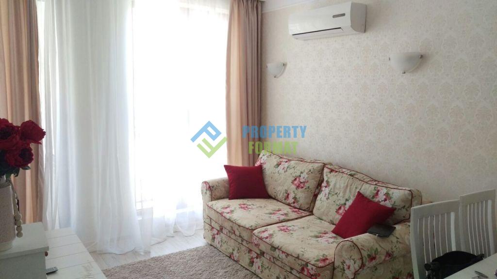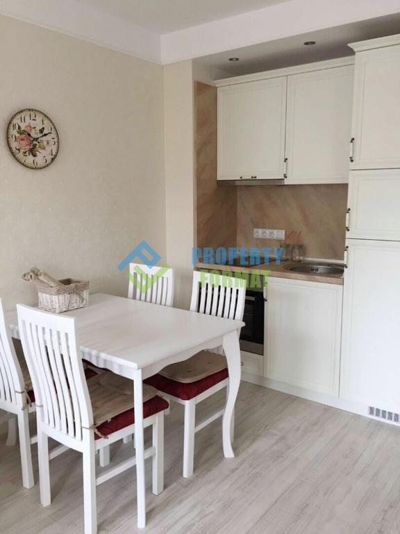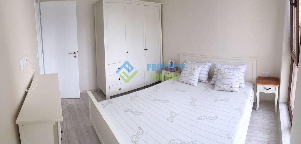 Светлая и уютная квартира имеет приятный белоснежный дизайн в сочетании с гармоничной и удобной планировкой. Распределение: прихожая, гостиная совмещенная с кухней, отдельная спальня, санузел и терраса. Выполнена полная меблировка всех комнат, а также обустройство бытовой техникой. На террасе можно отдыхать за столиком, наслаждаясь приятными видами на Святой Влас.