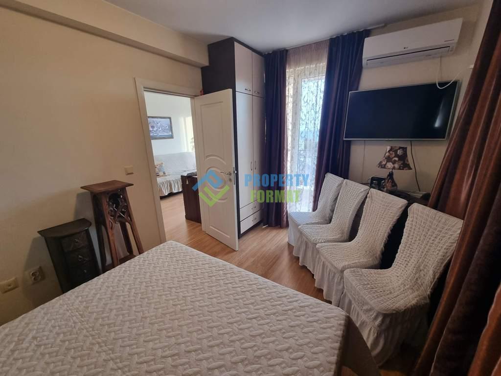 Уютная квартира состоит из гостинной,с кухонной зоной, две спальни, прихожая, санузел и балкон с видом на море. Квартира полностью оборудованная техникой и мебелью.